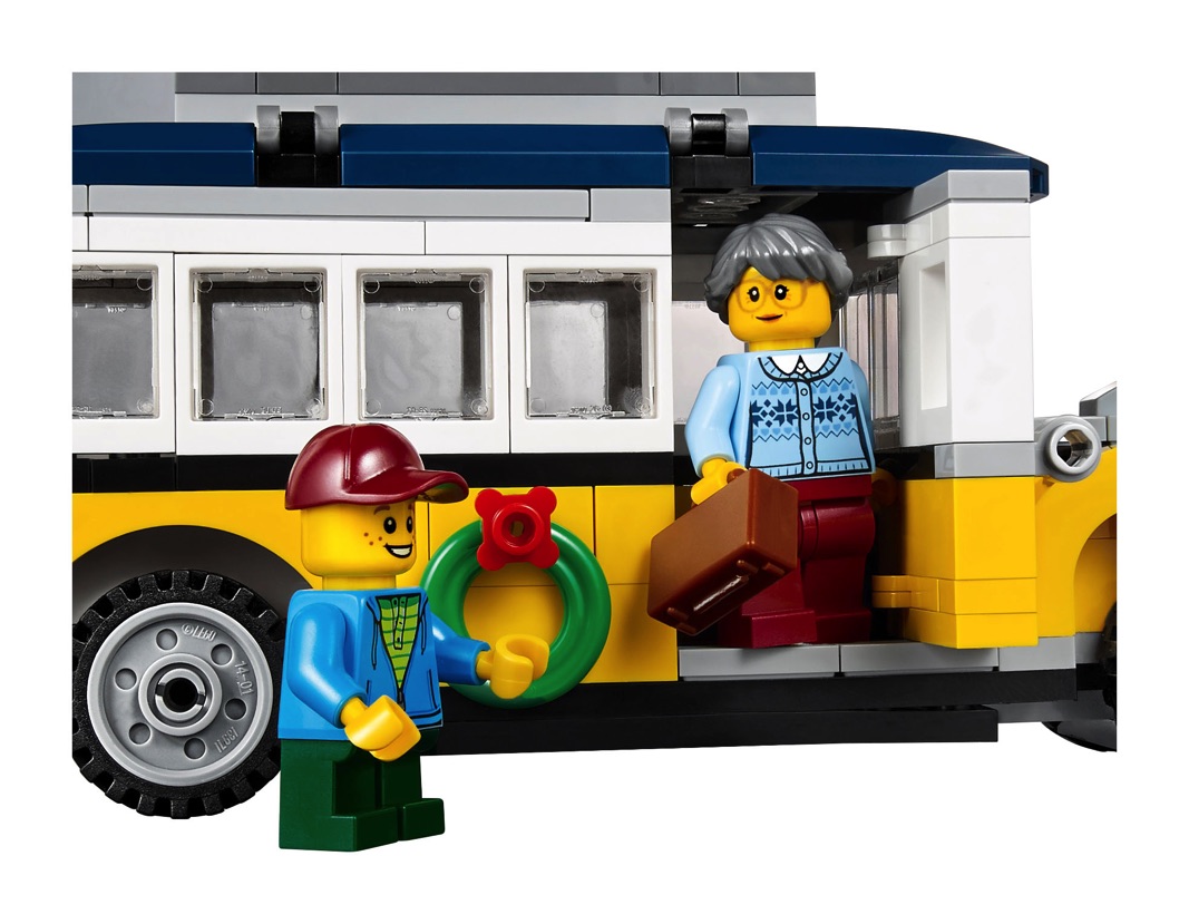 • Includes 5 minifigures: a bus driver, barista, grandmother, child and a ticket agent.