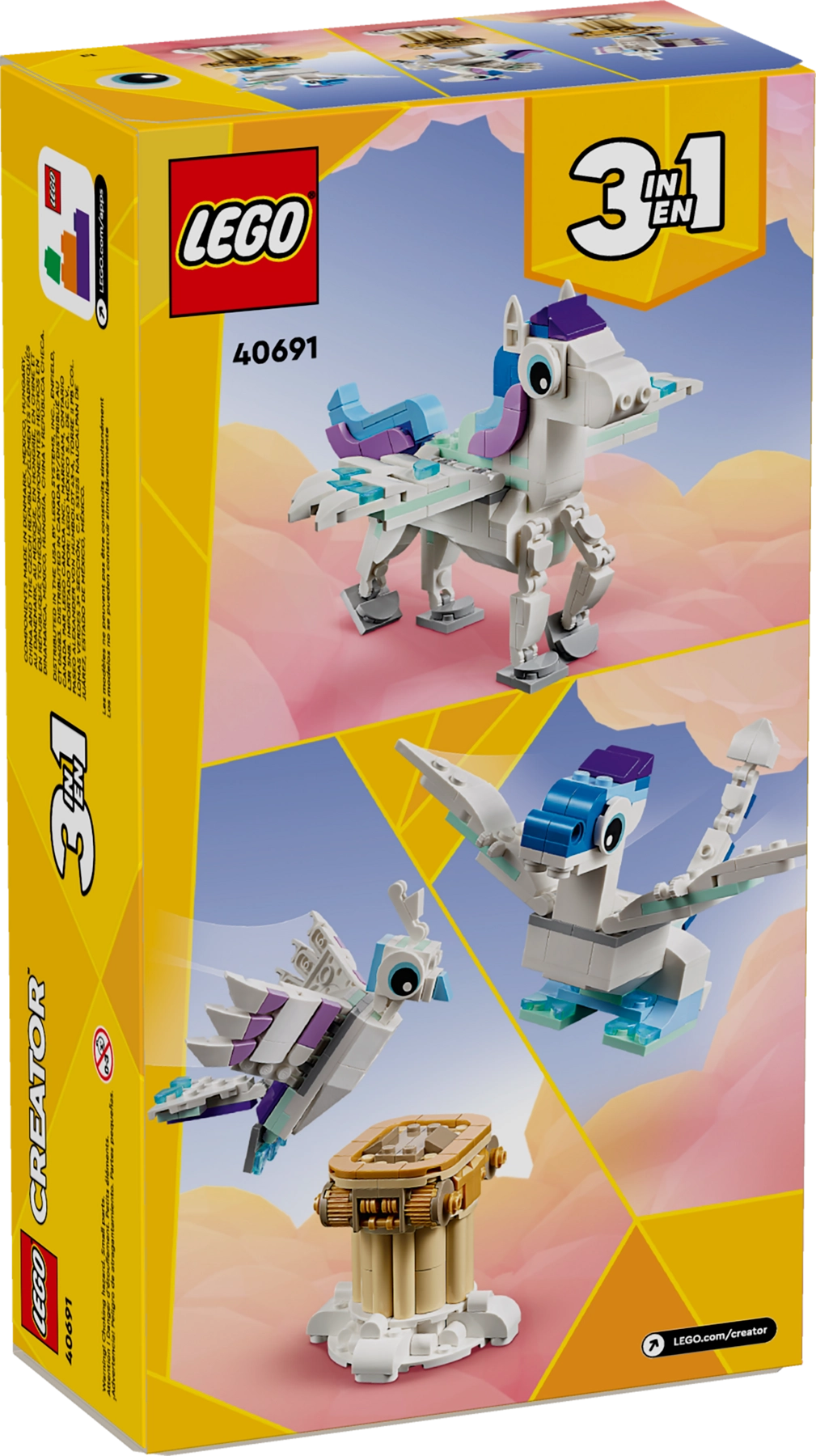 - Le set LEGO Creator 3-in-1 40691 Mythical Pegasus (278 pièces) est offert dès 100 € d’achat – une référence « 3 en 1 » qui propose également la construction d’un dragon et d’un oiseau