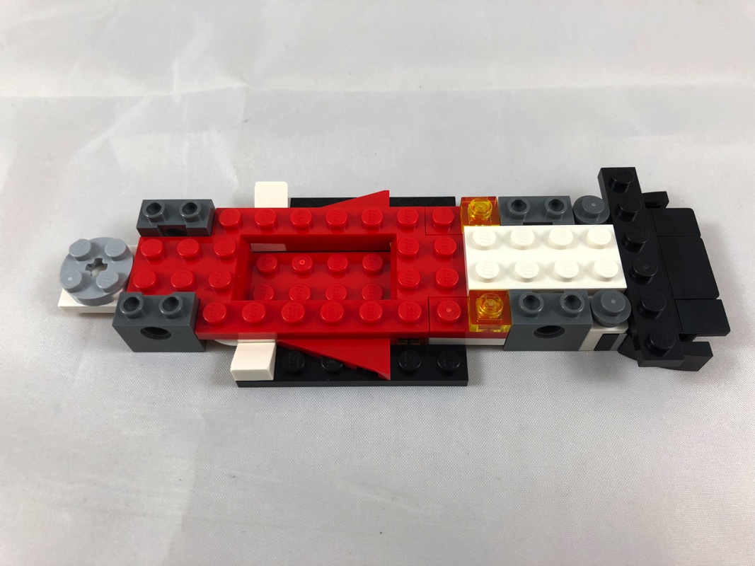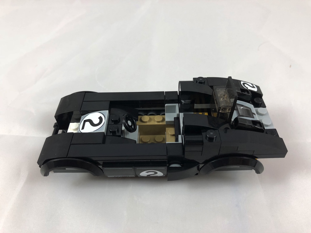 On continue avec l’assemblage de la Ford GT40. Ici, pas de châssis « tout fait », on le reconstitue à l’aide de différents éléments. On habille ensuite l’avant et l’arrière (sans les feux) avant de s’attaquer aux côtés de la voiture. Il faudra vous armer de patience pour appliquer correctement tous les stickers afin d’obtenir un rendu probant. On ajoute ensuite le cockpit, avant de s’attaquer à l’arrière. On ajoute ensuite les roues (et les très belles jantes en pearl gold), avant d’ajouter les phares avant constitué de briques, et dont l’angle est intelligemment trouvé grâce à des clips solidaires du châssis. Belle expérience de construction pour cette première voiture.