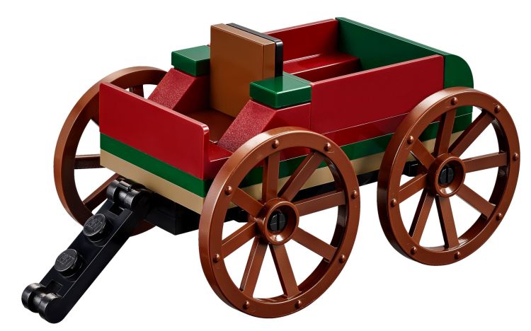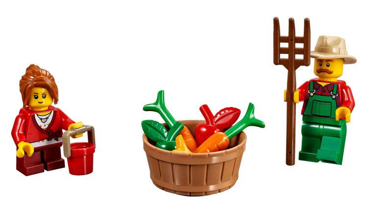 On y retrouve un ensemble qui devrait être fort sympathique, avec ses deux minifigs prenant soin de leur potager protégé par un épouvantail, une dinde et quelques légumes, une charrette pour transporter le tout, et un bel arbre aux couleurs automnales.