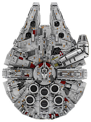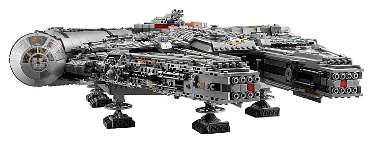 Ce nouveau modèle LEGO® Star Wars Millennium Falcon est le plus grand et le plus détaillé jamais conçu. En réalité, avec ses 7 500 pièces, c’est tout simplement l’un des plus grands modèles LEGO ! Cette fantastique version LEGO de l’inoubliable cargo Corellien de Han Solo présente les moindres détails dont rêvent tous les fans de Star Wars, quel que soit leur âge : d’innombrables détails à l’extérieur, quatre canons laser supérieurs et inférieurs, des pieds d’atterrissage, une rampe d’embarquement qui s’abaisse et un cockpit avec toit amovible pouvant accueillir 4 figurines. Chacune des plaques de la coque peut être retirée pour découvrir les innombrables détails du compartiment principal, le compartiment arrière et le poste d’artillerie. Ce superbe modèle présente également des équipages et des radars interchangeables, ce qui permet aux fans d’opter pour les aventures LEGO Star Wars classiques avec Han, Leia, Chewbacca et C-3PO ou de plonger dans l’univers de l’Episode VII et VIII avec les anciens personnages Han, Rey, Finn et BB-8 !
