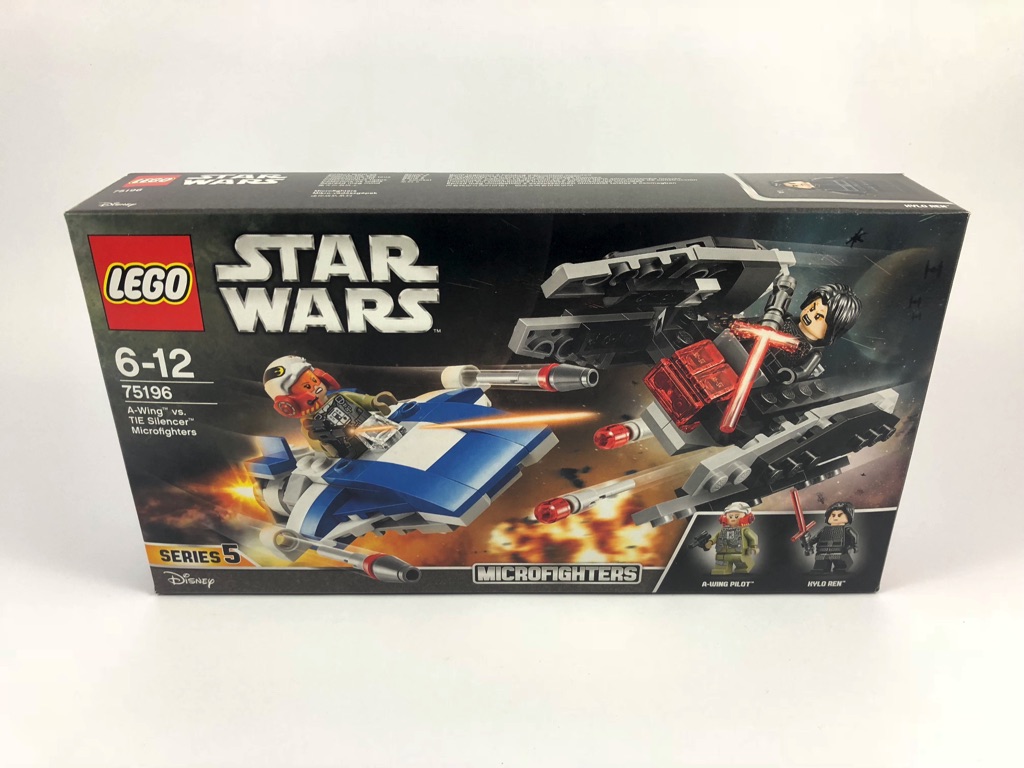 La série 5 des Microfighters LEGO Star Wars compte deux boîtes simples et, nouveauté cette année, deux boîtes doubles contenant chacune deux mini-vaisseaux et un morceau de décor. Je vous ai déjà donné mon avis sur la première d’entre elles, le set 75195 – Ski Speeder vs. First Order Walker Microfighters. Je vous propose de découvrir dans cet article ce que vaut la seconde, le set 75196 – A-Wing vs. TIE Silencer Microfighters.