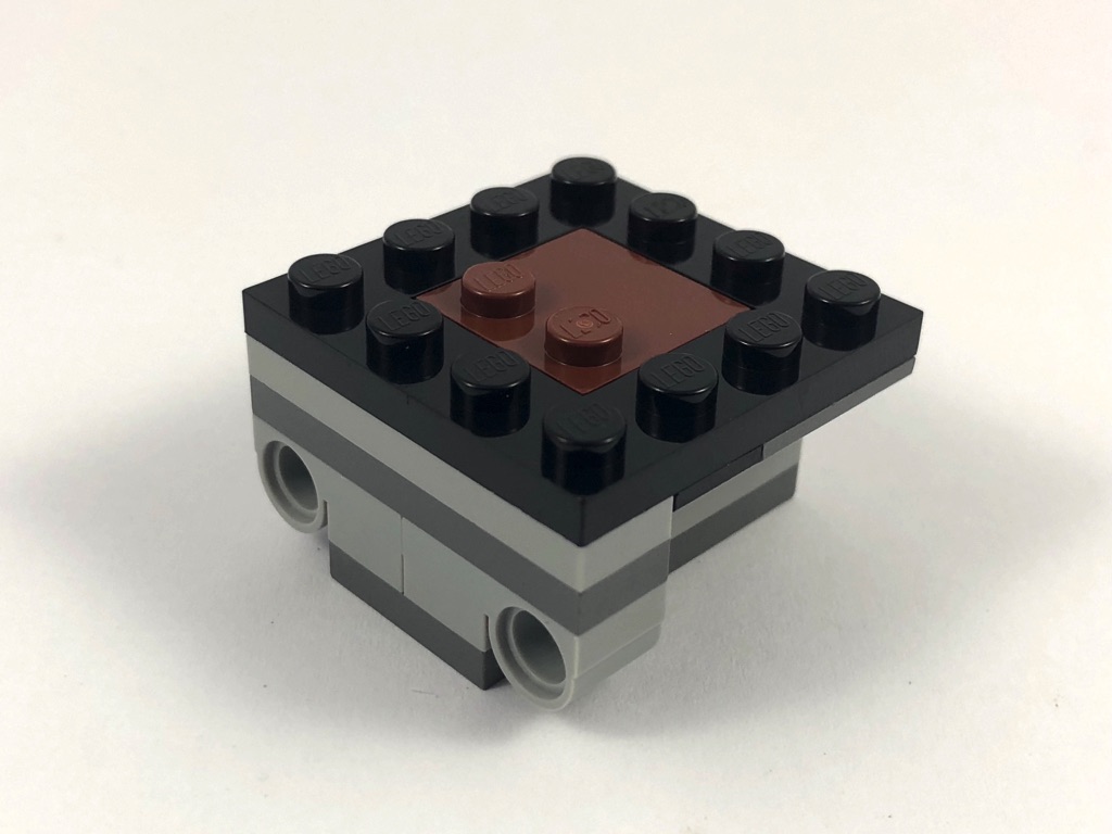 On commence par assembler la base du vaisseau, composée d’inverted slopes pour retrouver la forme caractéristique de ce dernier. Un bracket rouge et deux slopes grillagées permettent de reconstituer les réacteurs. C’est malin et plutôt réussi.