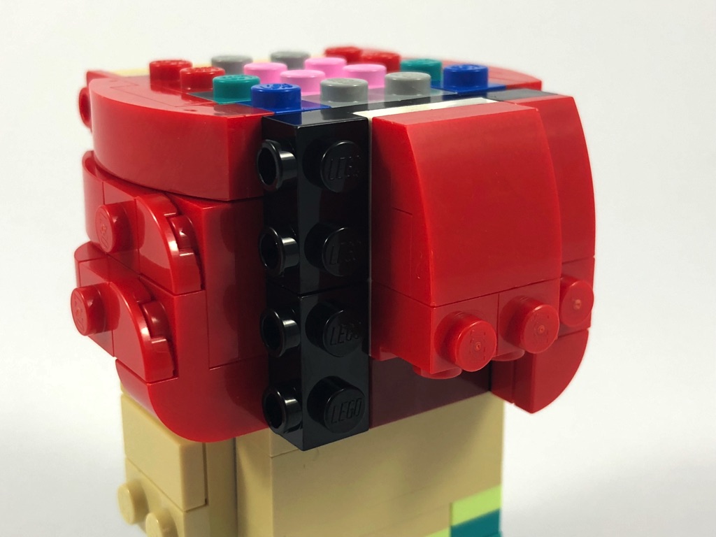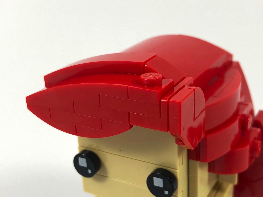 C’est lorsqu’on s’attaque à l’arrière de la tête que les choses deviennent très intéressantes. Après avoir ajouté quelques briques SNOT, on construit 6 sous-assemblages que l’on vient fixer sur la structure. Le résultat est impressionnant, même si l’on pourra juger le rendu final un peu « plat ».