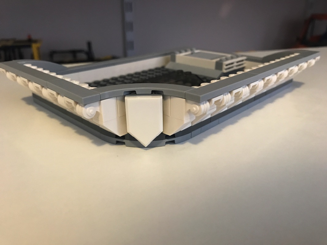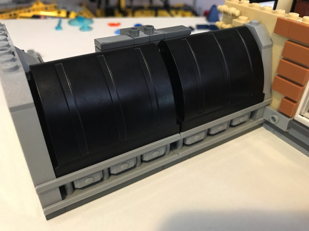 La fin de cette étape voit l’assemblage du toit, en dark bluish gray, et le pourtour blanc ouvragé. Il comprend également une trappe qui donne sur la salle de répétition de la danseuse, et une verrière. C’est ainsi que s’achève cette avant-dernière étape de construction.