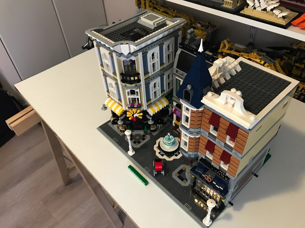 On peut dire que Lego a frappé fort avec ce modèle célébrant les dix ans de la gamme. Le modèle final est donc composé de trois niveaux, chacun composé de trois pièces distinctes, et le sol de la place en lui-même est également traité de fort belle manière. On pourra regretter une finition inégale entre les différents intérieurs, une mention spéciale étant pour moi accordée à l’appartement du 2ème étage. Ce modèle est un vrai régal à construire, de par la richesse de son inventaire, de ses couleurs, de ses astuces de montage, de ses personnages (qu’on aurait peut-être aimés un peu plus travaillés dans un set de cette taille). Il enrichira de fort belle manière toute collection de bâtiments modulaires et ravira les constructeurs avec tout ses petits détails, cachés pour certains. Enfin bref, une franche réussite, et un must-have !