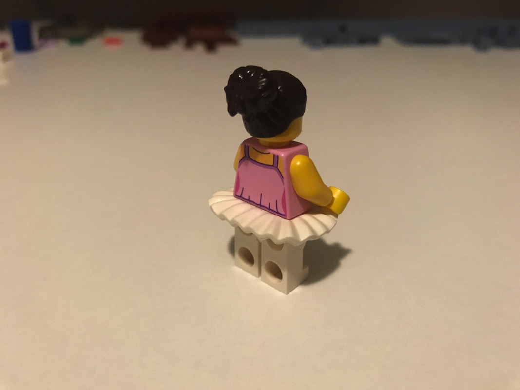 Rebelote pour l’étape suivante, avec encore deux minifigurines, représentant cette fois une danseuse avec son tutu, et un vendeur pour le magasin de musique. Traitement assez simple également, visages basiques et jambes monochromes.
