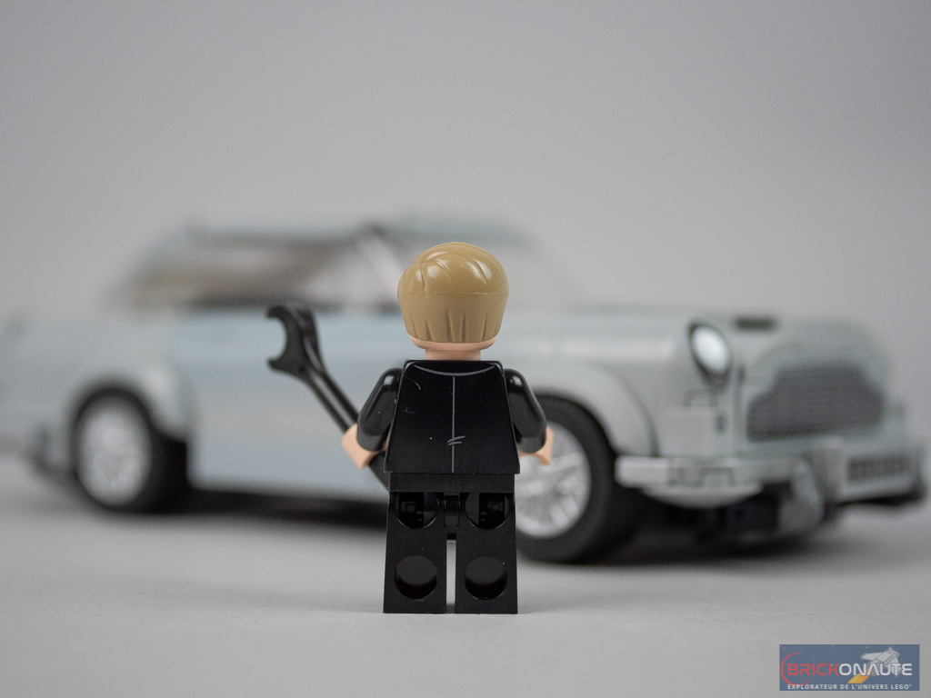 Hormis la coiffure, la minifig est totalement inédite. On regrettera comme de coutume la teinte un peu terne des vêtements clairs tampographiés sur des éléments sombres, ici la chemise blanche du smoking. Ce détail mis à part, la tampographie est simple mais bien réalisée. Par contre, James Bond risque d’avoir à employer d’autres méthodes que les armes à feu : il n’est ici armé que d’une clef plate.