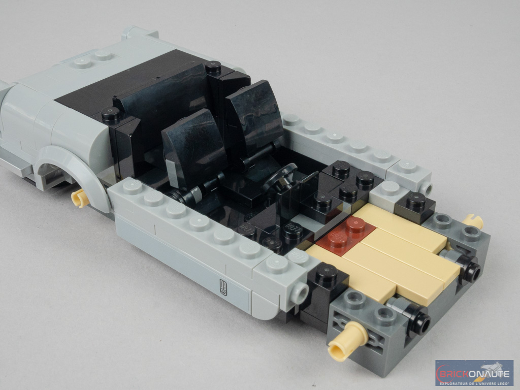 Au rang des autres petits défauts, notre voiture est peut-être un peu « plate », mais sa grande soeur de la gamme LEGO Creator Expert l’était tout autant. Et l’échelle retenue dans la gamme LEGO Speed Champions rend ce raccourci plus « excusable ». Les autocollants sont comme toujours d’une teinte légèrement différente des pièces qu’ils recouvrent et c’est un peu dommage.
