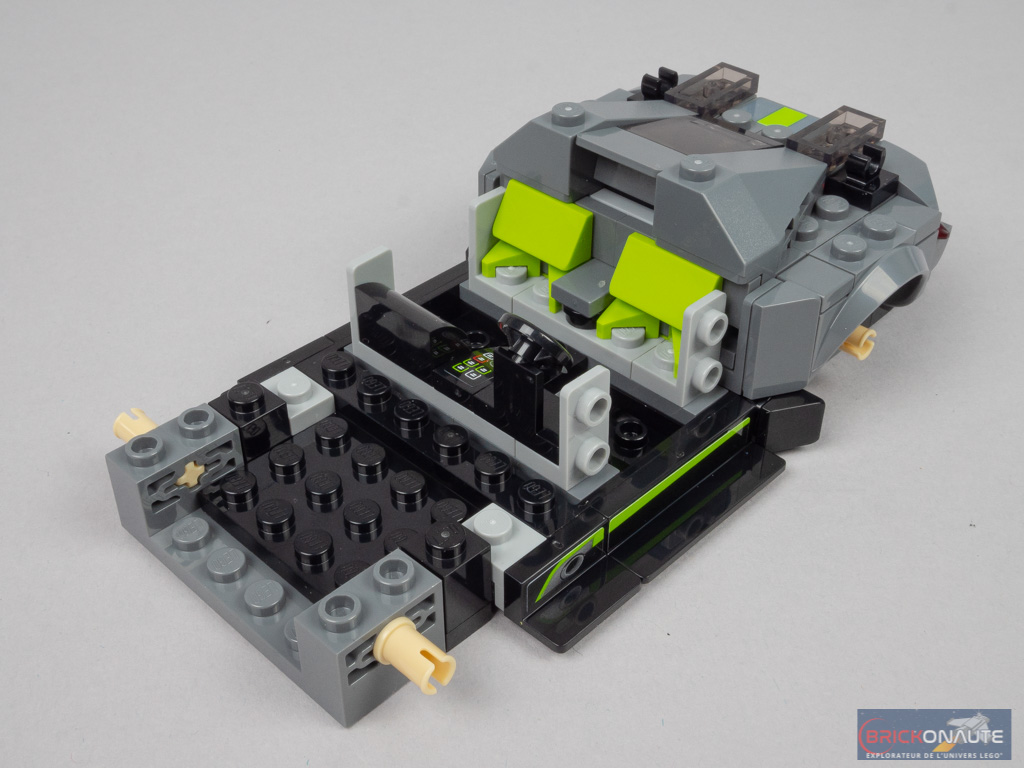 Ces différences de teintes sont particulièrement dommageables puisque, pour le reste, c’est franchement pas mal. À commencer par l’expérience de construction proposée, vous vous en êtes rendus compte à la lecture du chapitre précédent. Si cette gamme LEGO Speed Champions tend à nous proposer, encore et toujours, des techniques de construction plus intéressantes les unes que les autres, notre modèle pousse cet aspect encore plus loin que d’habitude. C’est sans doute l’un des meilleurs modèles de cette gamme qu’il m’ait été donné de construire de ce point de vue.