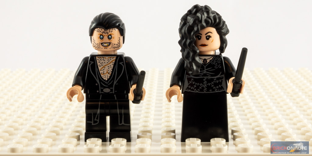 Le torse moitié nu de Fenrir est malheureusement assez terne, comme (trop) souvent dans le cas d’une couleur claire tampographiée sur une pièce foncée. C’est dommage car pour le reste, le personnage est vraiment réussi notamment au niveau du visage, inédit jusqu’ici. Du côté des méchants, on remarquera également Bellatrix Lestrange. Elle aussi est particulièrement bien réalisée, jusqu’au pendentif et à la capuche présente dans le dos.