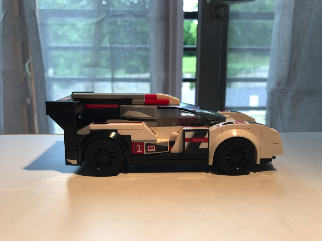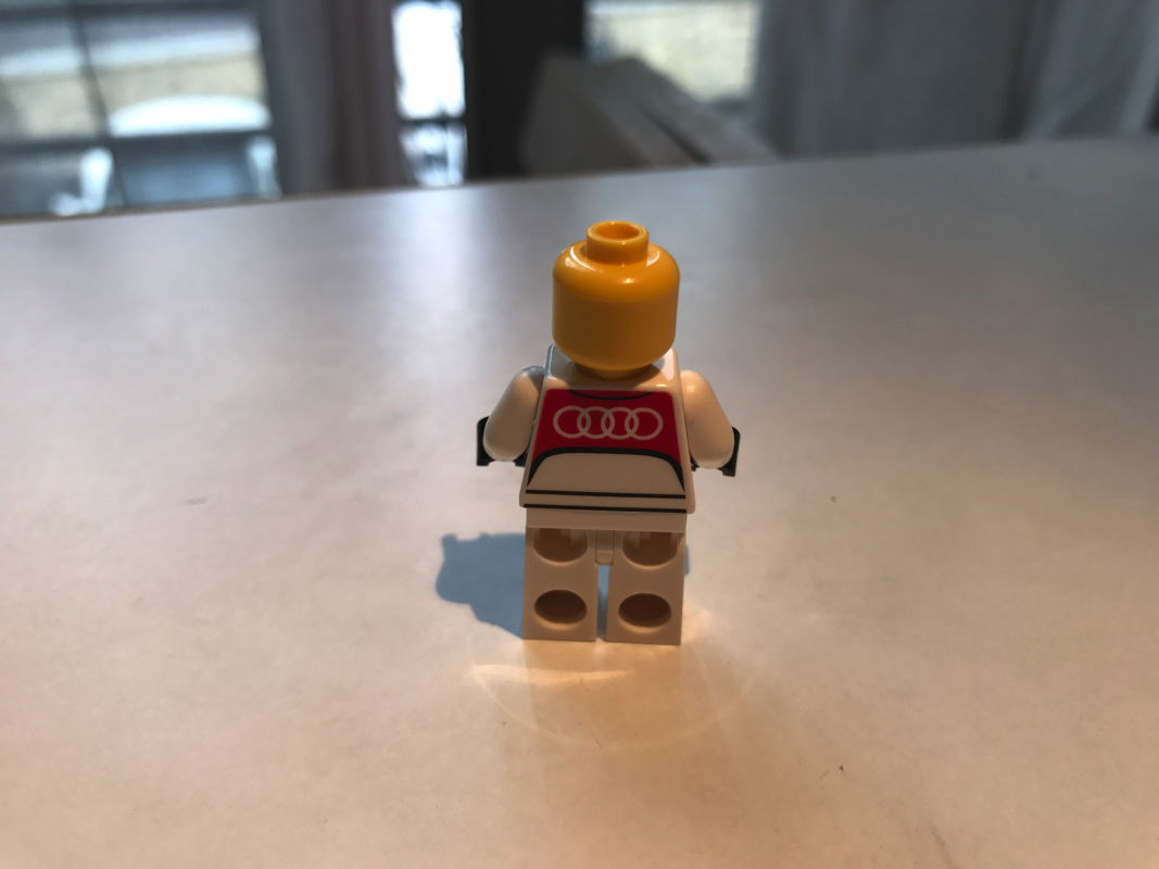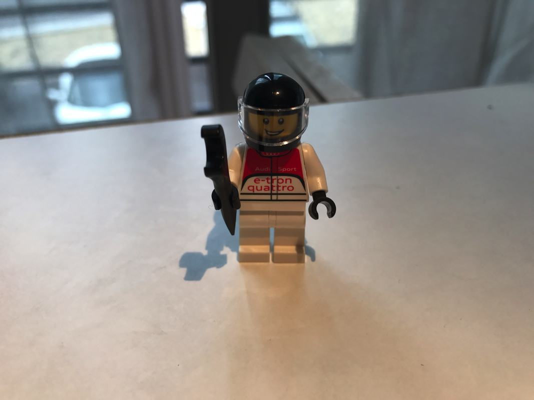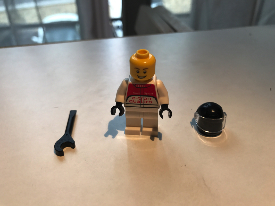 C’est le pilote de la voiture que nous retrouvons dans ce set, qui peut faire office de mécanicien également avec la clé plate qui lui est fournie. Un torse assez simple avec le logo Audi et le nom de la voiture, avec un second logo dans le dos, un pantalon blanc monochrome, un seul visage et un casque noir sans motifs qui vient compléter l’ensemble, rien d’exceptionnel donc pour cette minifig.
