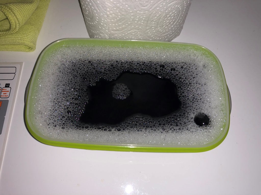 - remplissez votre récipient avec un peu d’eau (légèrement) savonneuse, et mélangez la bien