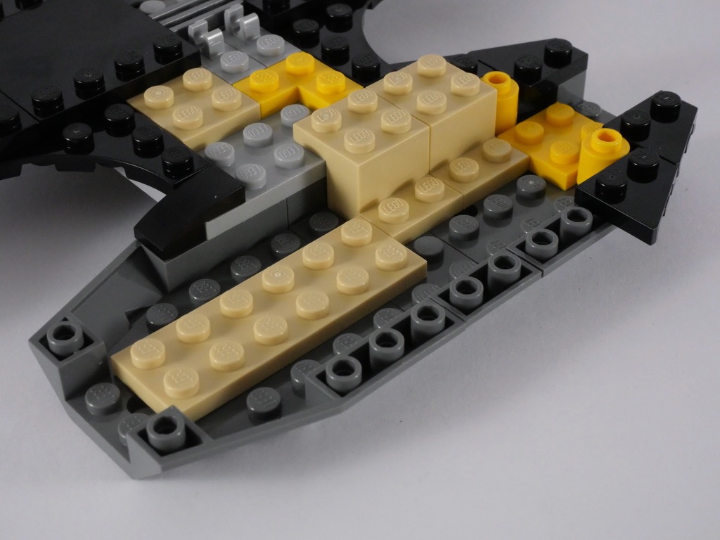 Après ces diverses mises en bouche, nous passons au plat de résistance : le Batwing. On commence par assembler une première aile, à laquelle on ajoute ensuite une partie du cockpit. On complète ce cockpit, avant d’y ajouter la seconde aile. Le design de celles-ci est réussi, et reprend habilement la forme du célèbre logo. Cette deuxième aile achève le 3ème sachet de pièces.