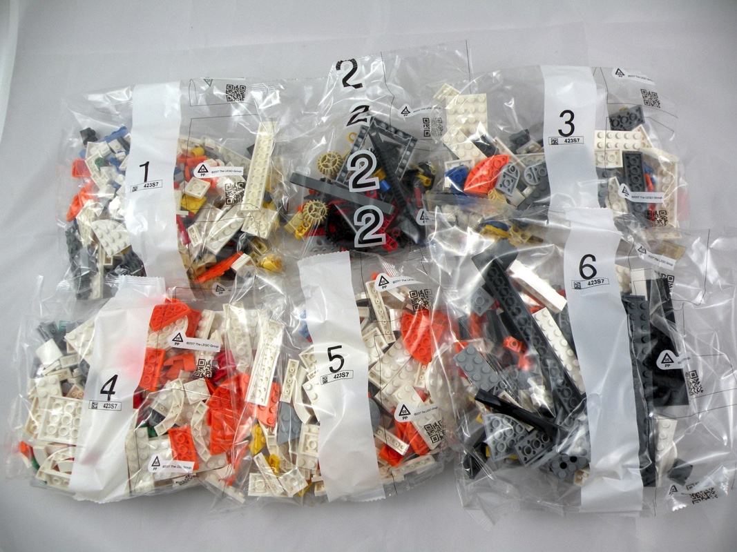 A l’intérieur, 6 sachets de pièces numérotés de 1 à 6 (autant dire que tout tri préalable sera inutile, un bon point), une notice de 168 pages, et un sticker avec les caractéristiques du robot.
