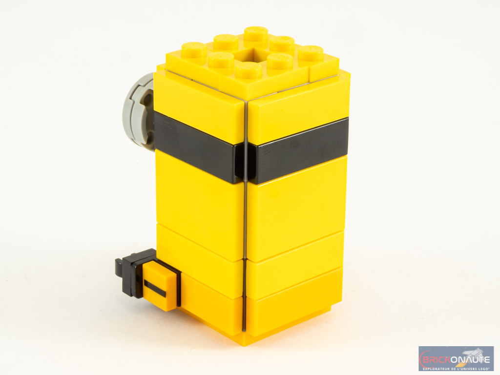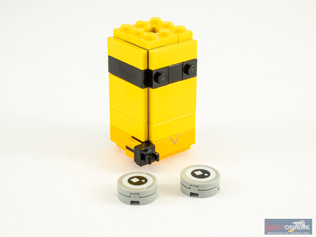 Pour le reste, je vais me répéter : je trouve que malheureusement le format BrickHeadz ne se prête pas particulièrement à la représentation des Minions et de leurs formes arrondies. Je suis pourtant fan de cette gamme mais là, je ne suis pas persuadé de la pertinence de représenter les Minions sous ce format. Mais comme d’habitude il ne s’agit que de mon avis personnel et d’après les commentaires que j’ai pu lire çà et là, ce sujet ne semble pas être gênant pour tout le monde (y compris pour certains d’entre vous qui ne s’intéressent habituellement pas à cette gamme !).