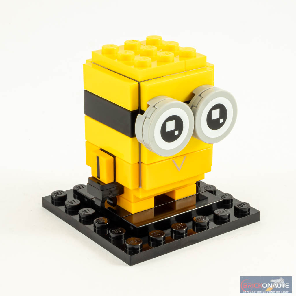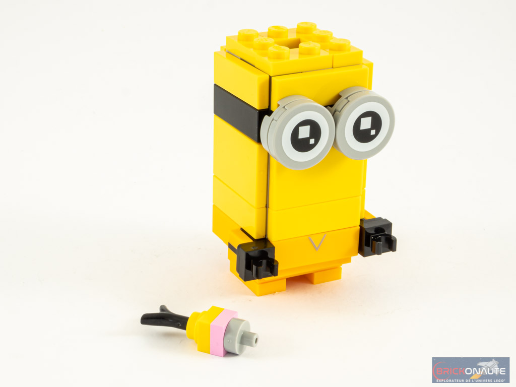 Si la caractéristique principale de Kevin, sa taille, permet de le reconnaître instantanément, ce n’est pas tout à fait le cas pour Bob. Car ce dernier présente deux caractéristiques qu’il était à mon avis nécessaire de reproduire : sa petite taille (pas de problème) et ses yeux vairons. Dommage que le set n’intègre pas deux yeux de couleurs différentes pour le personnage.