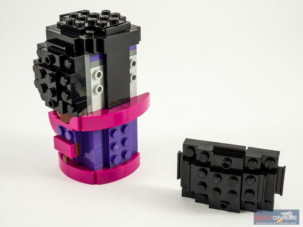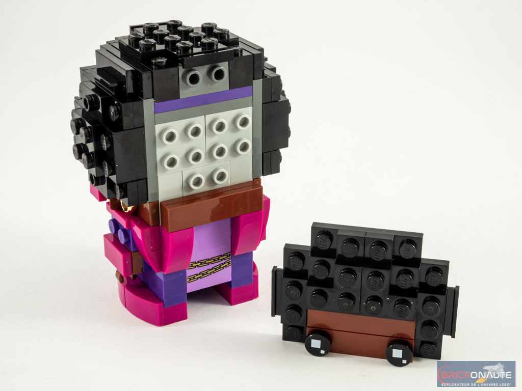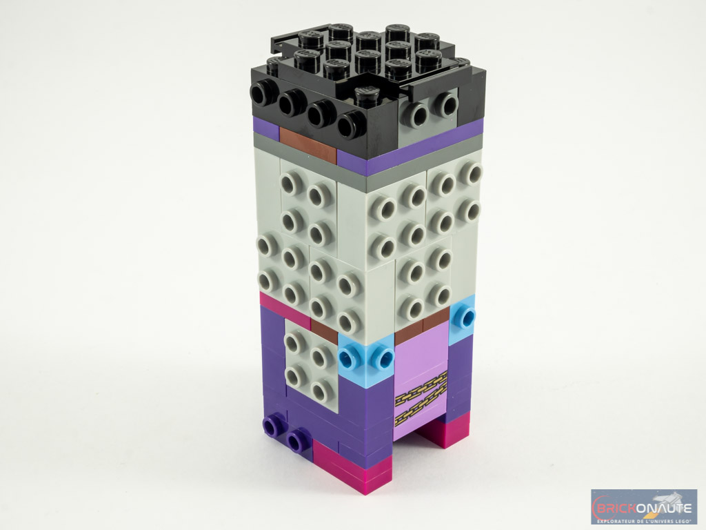 Une fois terminé, le résultat est franchement sympa et la « méchante » vue dans les différentes bandes-annonces est instantanément reconnaissable. La chevelure « afro » est superbement faite, et tous les petits détails du torse sont présents, qu’il s’agisse de la chaîne en or servant de ceinture mais surtout des éléments de fourrure rose sur la robe violette. Du beau travail pour ce premier personnage.