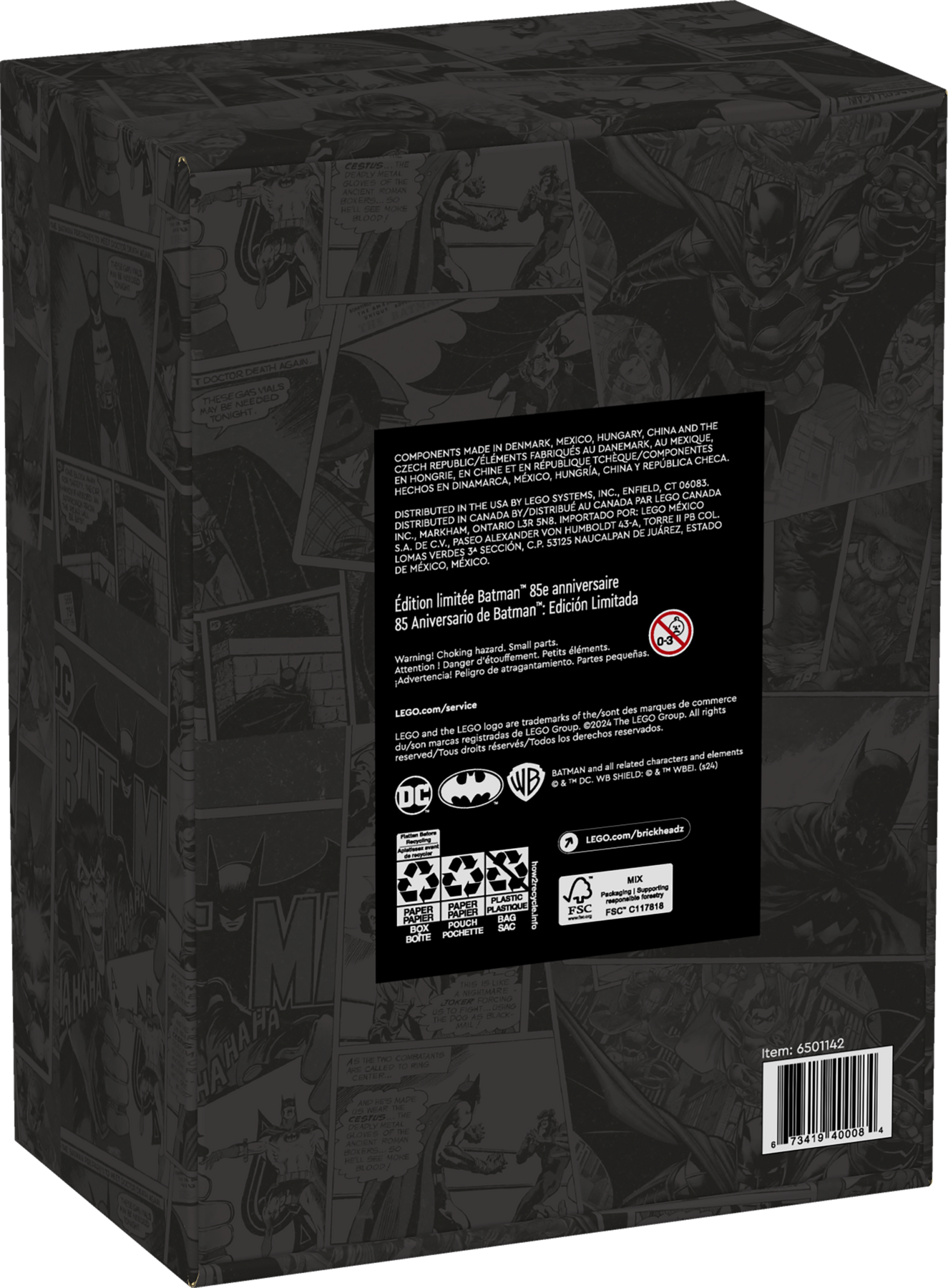 La version australienne du shop LEGO nous propose les premières images du set LEGO Brickheadz 40726 Limited Edition Batman 85th Anniversary, une boîte qui devrait être très bientôt offerte sous conditions d’achat. Il s’agit d’une version « anniversaire » du set 40748 Batman 8in1 Figure (325 pièces – 24,99 €) disponible depuis quelques semaines.
