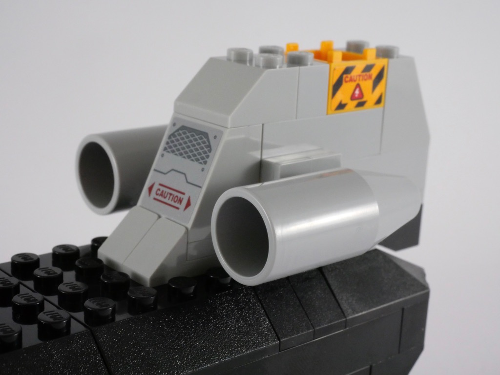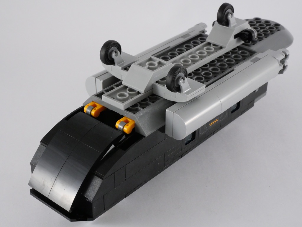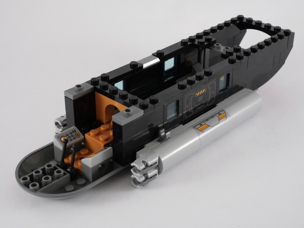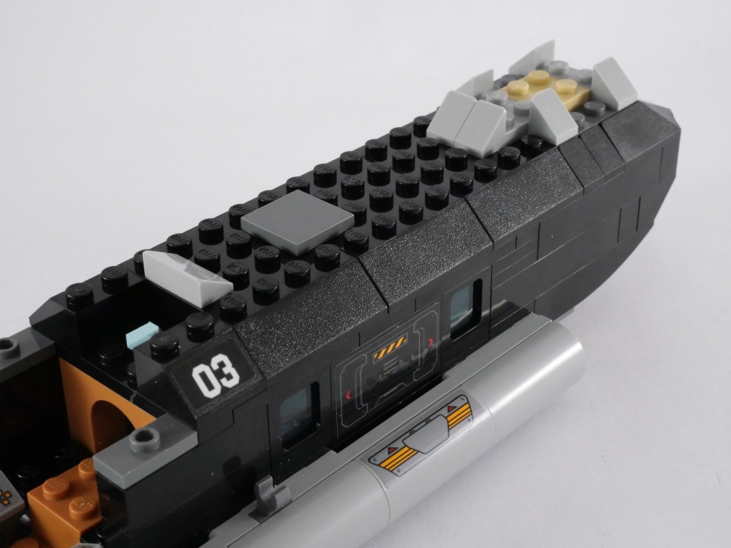 Une chose que l’on ne pourra pas reprocher à ce set, c’est sa jouabilité. Tout ceci est extrêmement robuste et résistera sans peine aux nombreux vols qui seront programmés. La possibilité de placer les minifigs aux commandes, et d’accéder facilement à la partie arrière pour y caser tout plein de choses est également intéressante. D’ailleurs sur ce point, cette partie arrière aurait mérité un peu d’aménagement. N’oublions pas non plus les stud-shooters pour tirer sur les méchants, et 3 minifigs pour tout un tas de mises en scène.