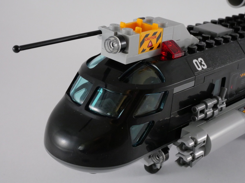 Autant le dire tout de suite : je ne suis pas extrêmement convaincu par le design de la chose. A commencer par le fait que tout ceci est très « carré ». Certainement dans l’optique de faciliter la construction pour les plus jeunes (rappelons que la boîte porte la mention « 7+ ») et de contenir les coûts. Plus gênant, j’ai eu beau regarder deux bandes annonces différentes je n’ai pas vu la trace de cet hélicoptère. J’espère que le film me donnera tort sur ce point, mais il va falloir attendre.