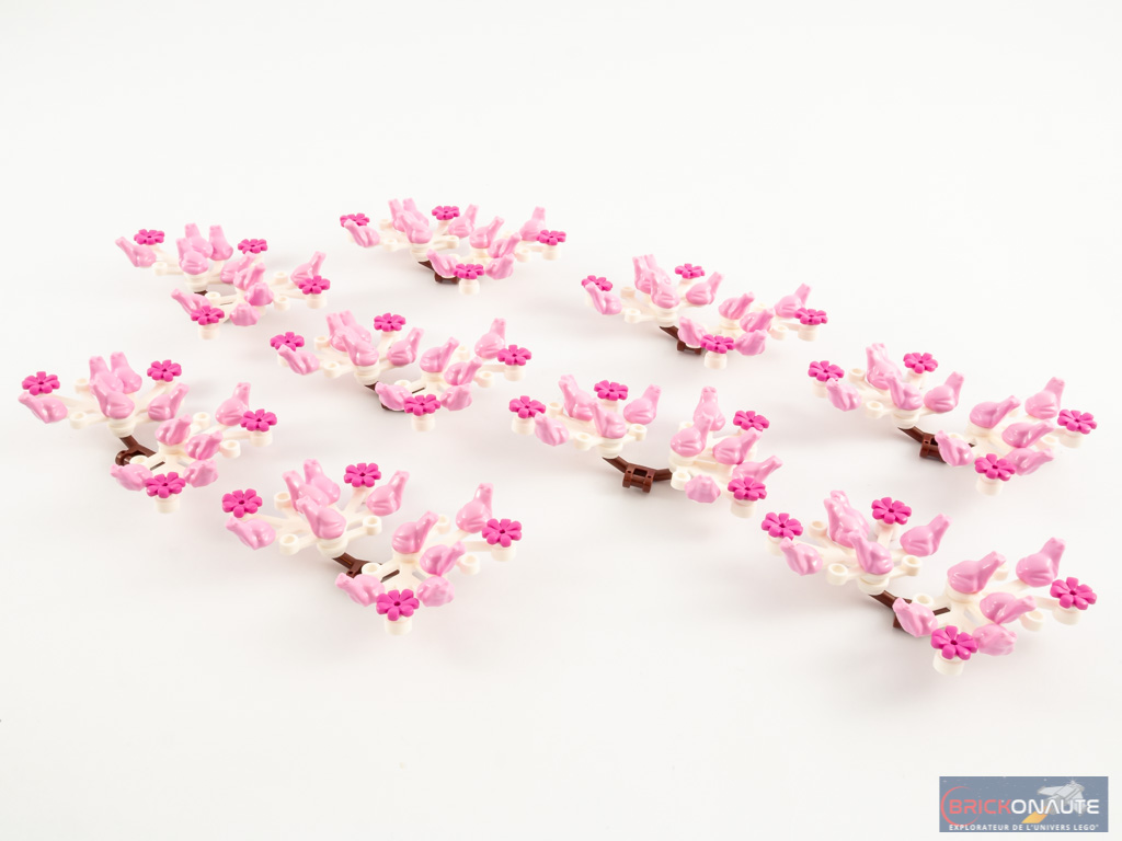 Concernant le prix demandé par LEGO, je le trouve une fois de plus plutôt raisonnable : 49,99 € pour 878 pièces. Et ce même si 200 de ces pièces sont les round tiles qui servent à remplir le pot. On retrouve quelques éléments rares – dont pas moins de 100 grenouilles roses !