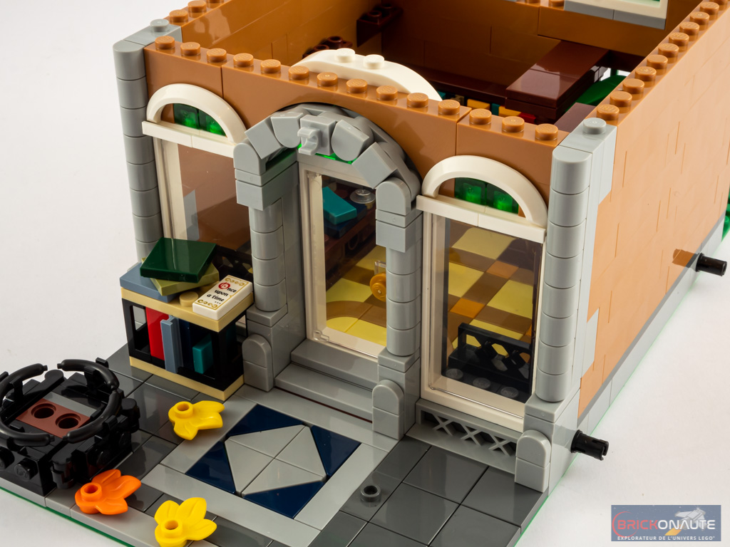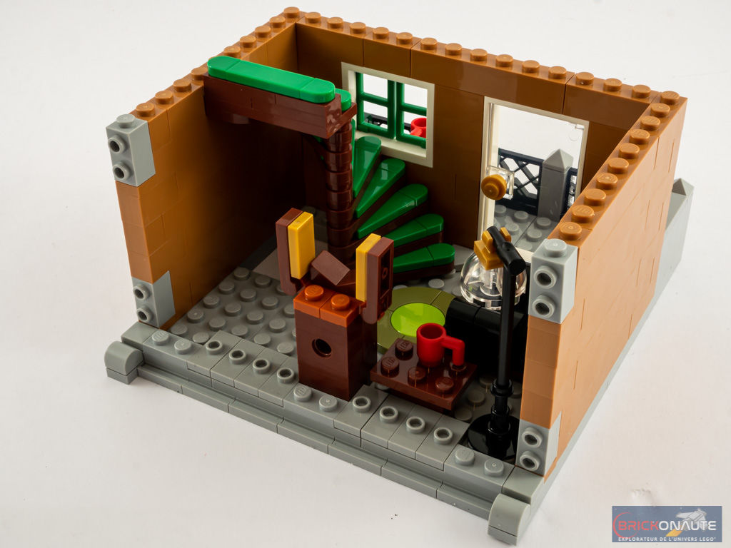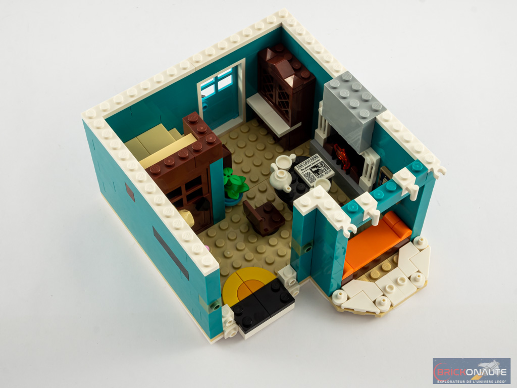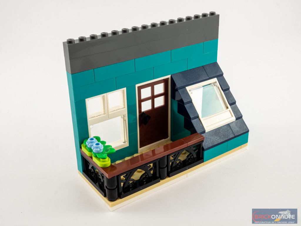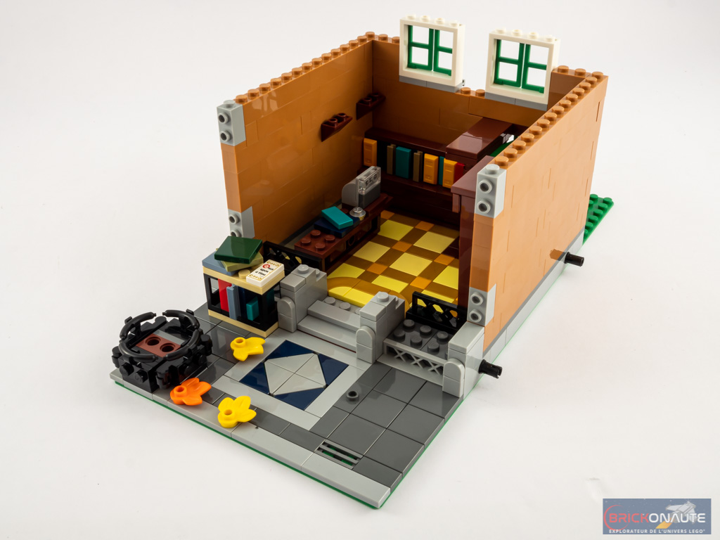 Entendons nous bien : cela reste intéressant, mais j’ai eu un peu de mal à y retrouver ce qui fait le « sel » de l’expérience de construction LEGO Creator Expert. Et heureusement, à mon goût, la construction de la maison d’habitation est d’un tout autre niveau sur ce point et fait la part belle à des techniques de construction très intéressantes et variées, celles-là même qu’on aime retrouver dans les bâtiments modulaires. Le fait de proposer deux bâtiments apporte également un peu de variété appréciable, ils sont vraiment très différents l’un de l’autre.