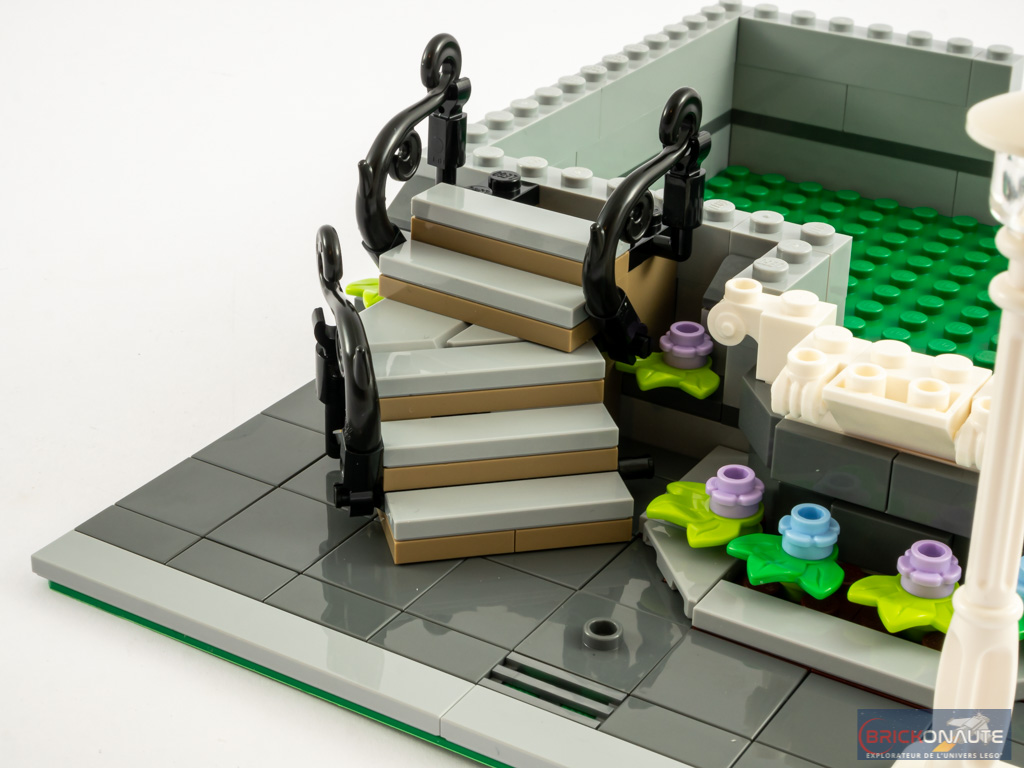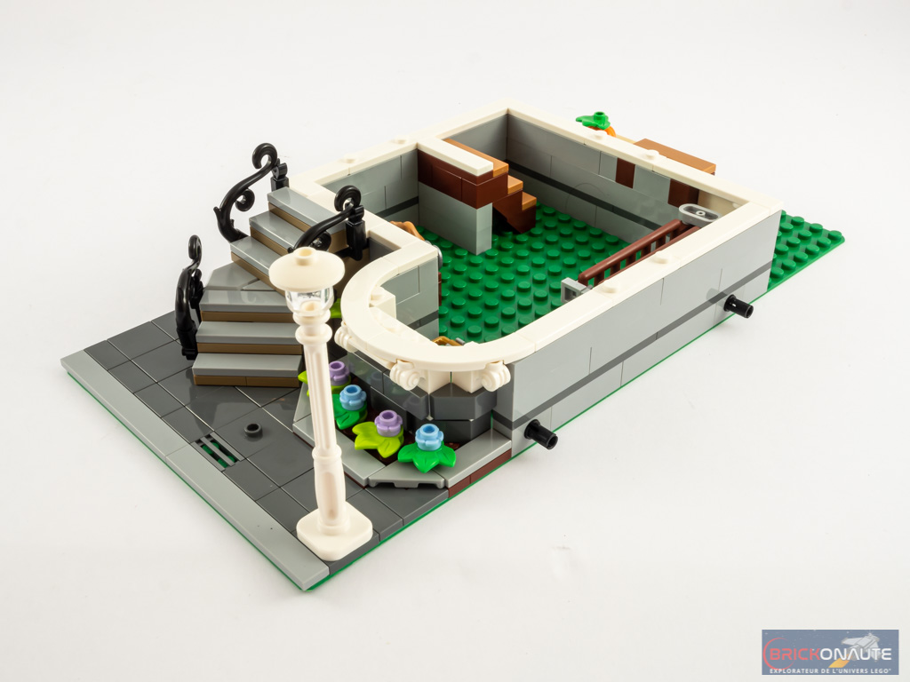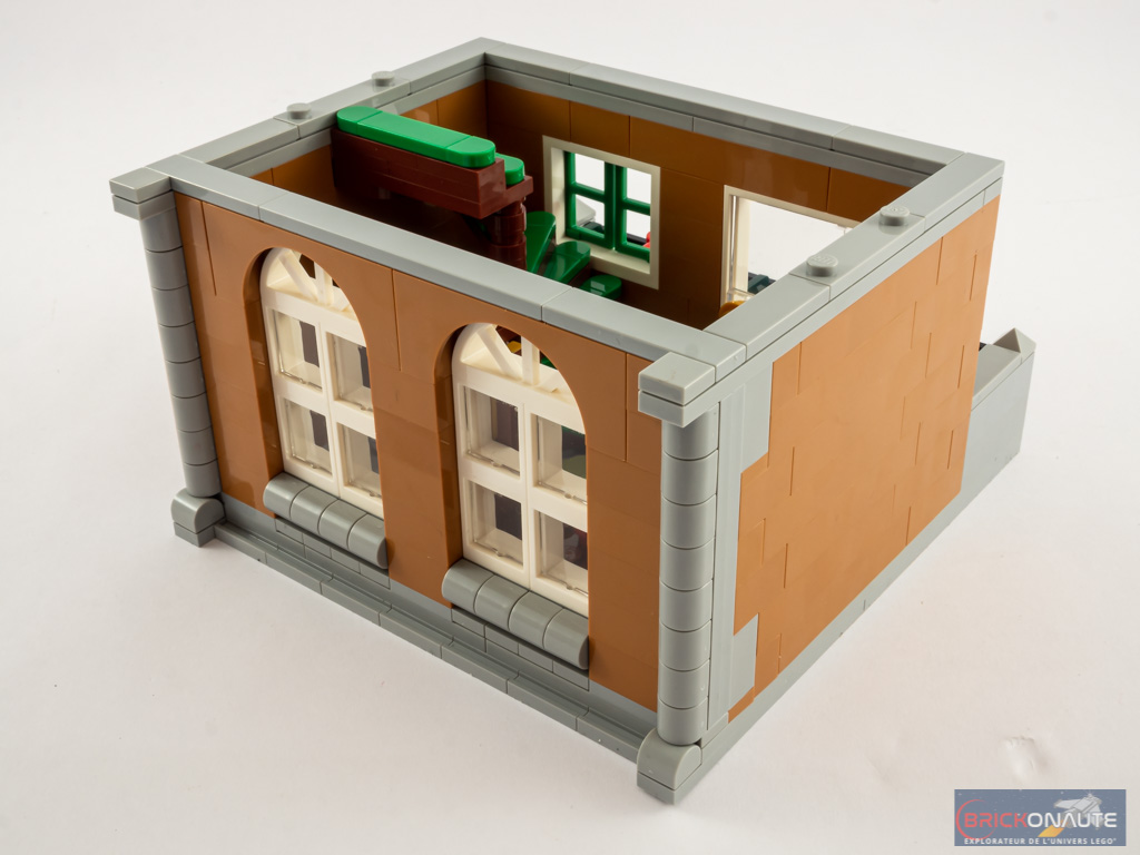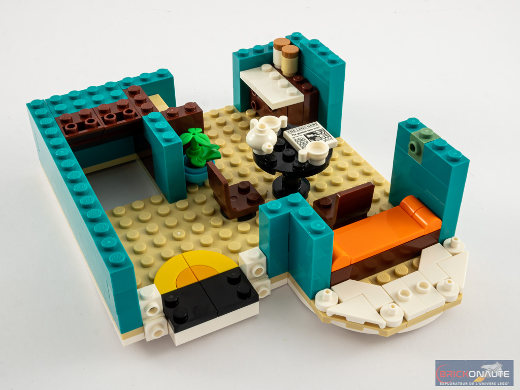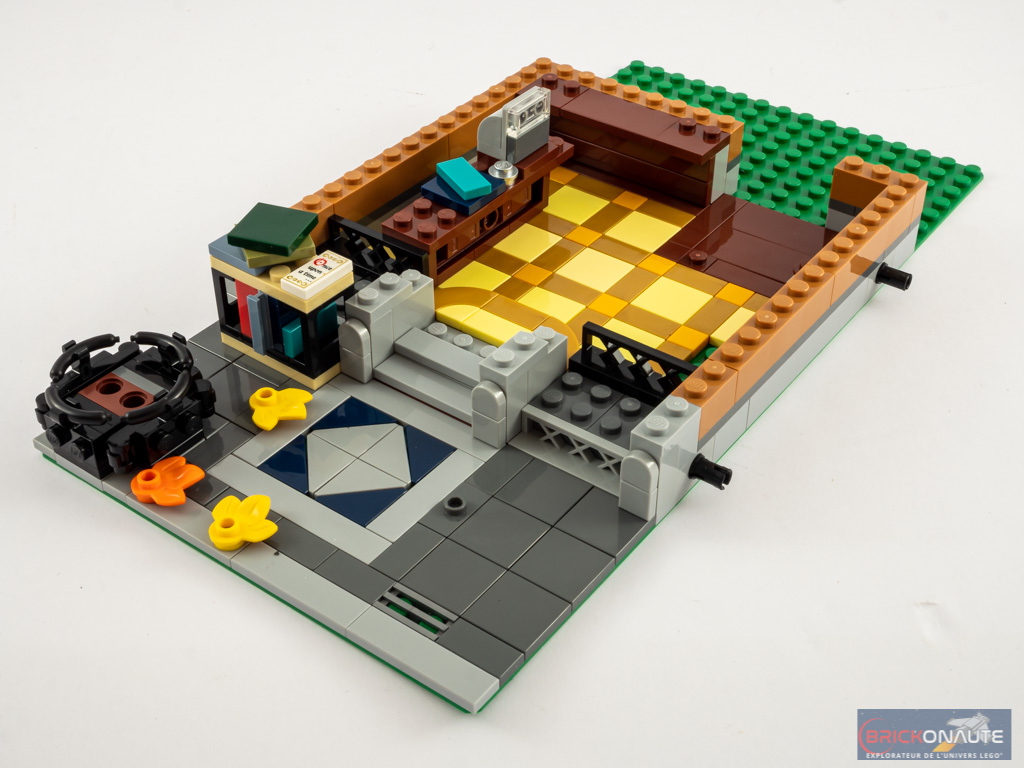 Entendons nous bien : cela reste intéressant, mais j’ai eu un peu de mal à y retrouver ce qui fait le « sel » de l’expérience de construction LEGO Creator Expert. Et heureusement, à mon goût, la construction de la maison d’habitation est d’un tout autre niveau sur ce point et fait la part belle à des techniques de construction très intéressantes et variées, celles-là même qu’on aime retrouver dans les bâtiments modulaires. Le fait de proposer deux bâtiments apporte également un peu de variété appréciable, ils sont vraiment très différents l’un de l’autre.