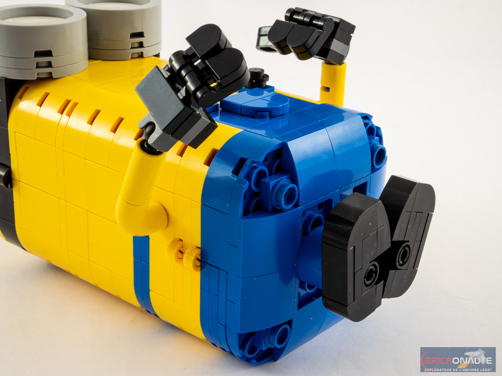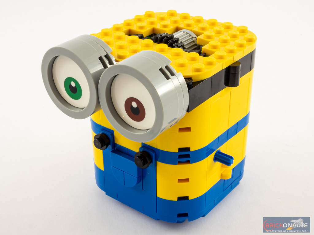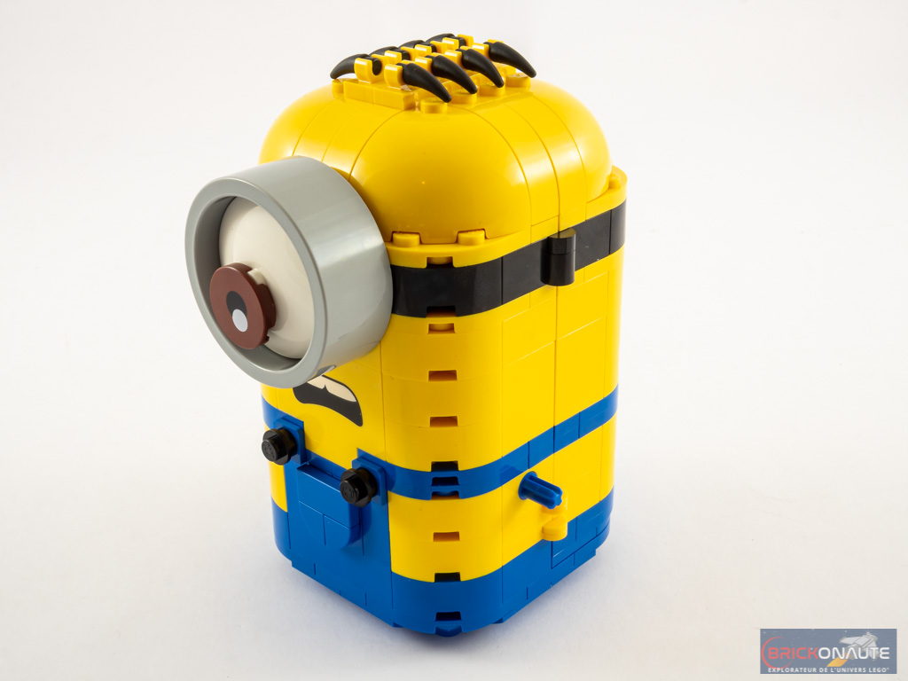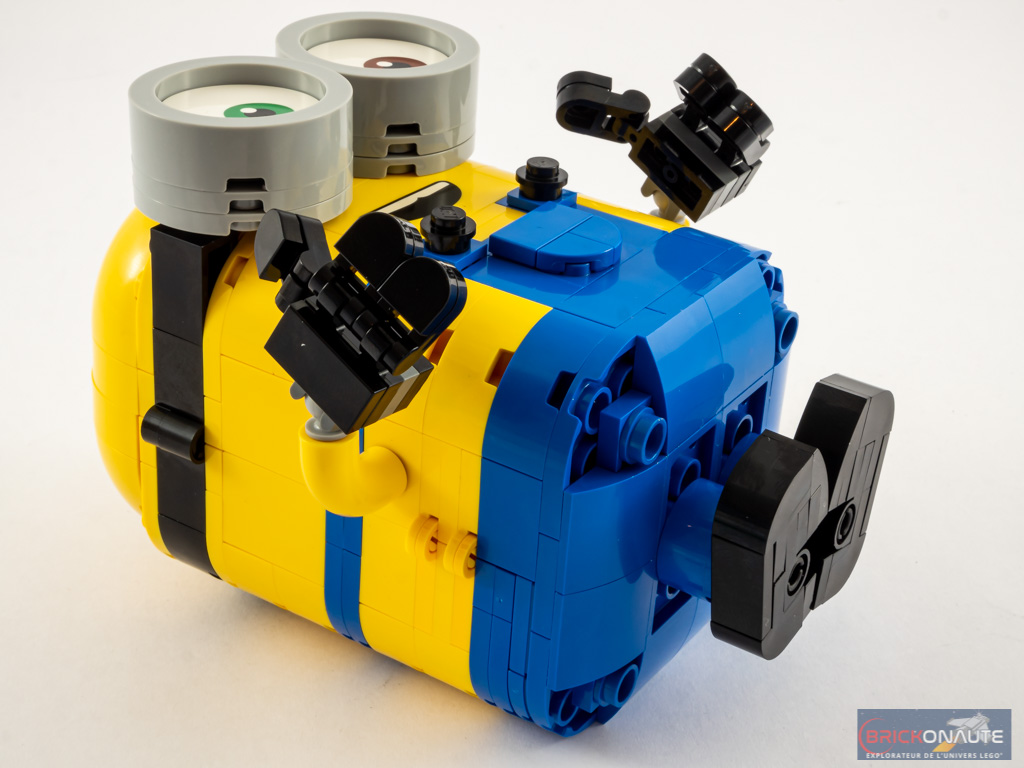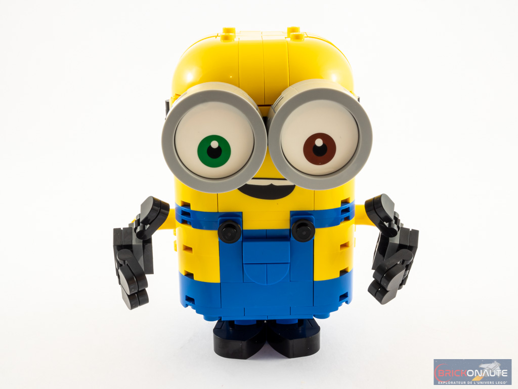 Le design général est réussi, chacun des personnages étant identifiables par ses quelques caractéristiques : les yeux vairons de Bob, l’oeil unique de Stuart ou la grande taille de Kevin avec sa petite touffe de cheveux. Le corps et les pieds sont identiques entre les 3 personnages, à l’exception des bras de Kevin un peu plus longs que ceux de ses copains. Notez d’ailleurs que les bras sont fixés sur des pins Technic et que les mains sont articulées sur des ball joints : il est donc possible d’orienter tout cela comme on le souhaite.