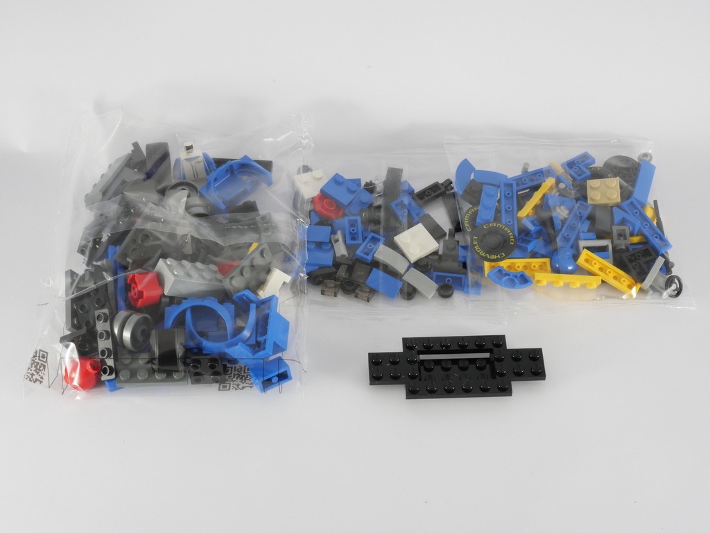 Comme d’habitude avec la gamme LEGO Speed Champions, le set nous est livré avec le pilote de la voiture à construire. Il porte une verste de pilote blanche avec quelques touches de bleu, le logo Chevrolet sur le torse, et le même logo accompagné de la mention « Racing » dans le dos. Les manches sont bleues, et les gants gris. Le visage arbore un large sourire sous le casque bleu, et il dispose d’une clé plate pour réparer la bagnole. Vous l’aurez compris : service minimum pour cette minifig, même si le torse est exclusif.