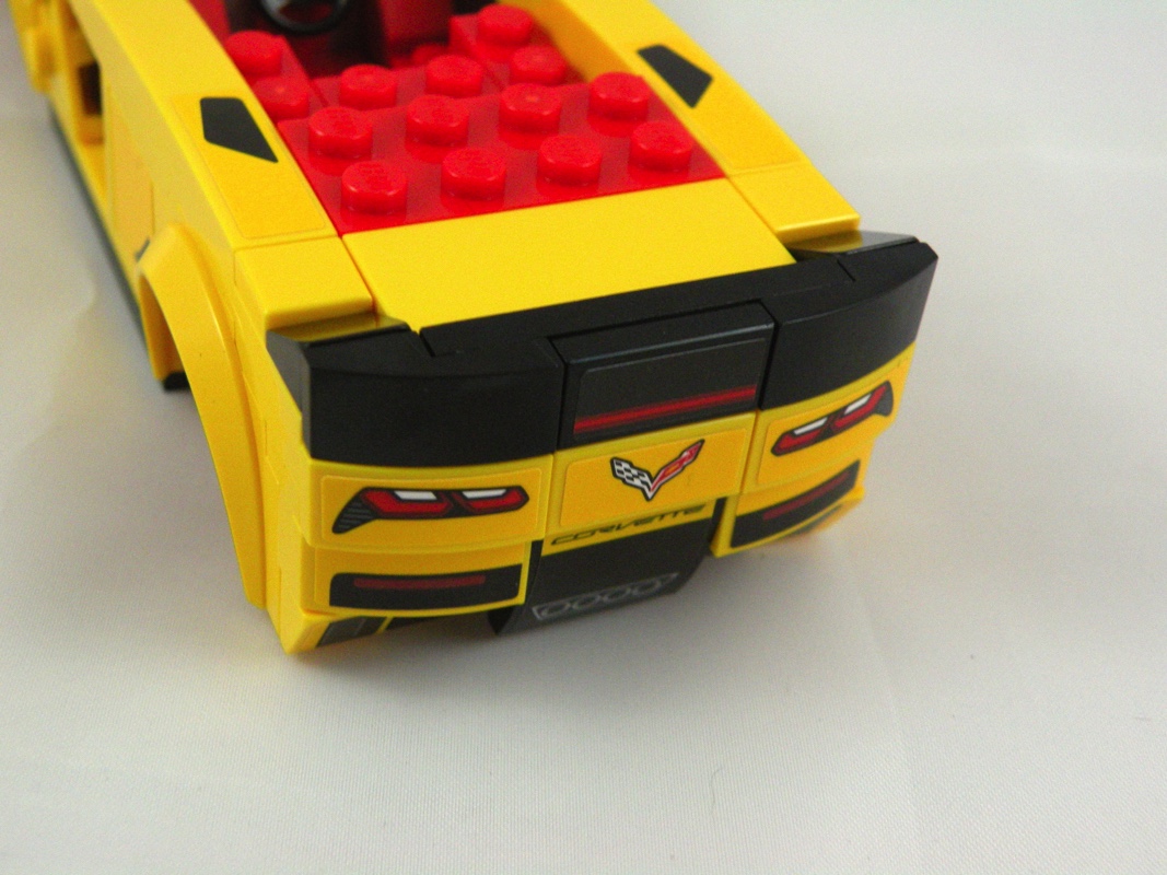 Autre point sympathique, des briques transparentes décalées de niveau et recouvertes de grandes slopes jaunes sont utilisées afin de représenter les custodes arrières, bel effort du designer sur ce point.