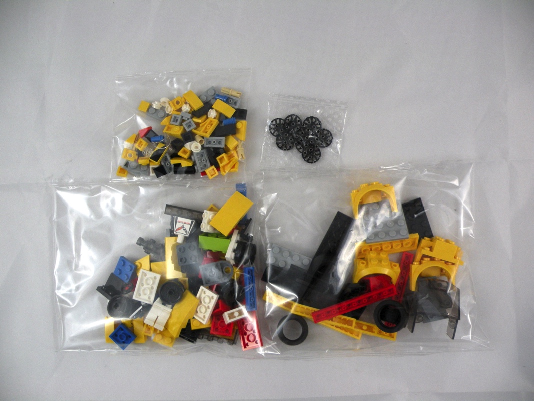 A l’intérieur, on trouve 4 sachets de pièces, dont un contenant les jantes et leur jeu de rechange. Nous avons droit à l’habituelle planche de stickers, ici au nombre de 23, et à la notice d’instructions.