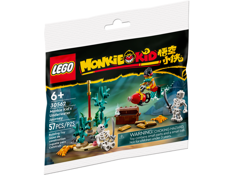Le polybag 30562 Monkie Kid’s Underwater Journey est offert dès 40 € d’achats de produits dans les gammes Monkie Kid et/ou Ninjago. Ici, c’est Monkie Kid en tenue de plongée qui vient de trouver un trésor… gardé par deux squelettes.