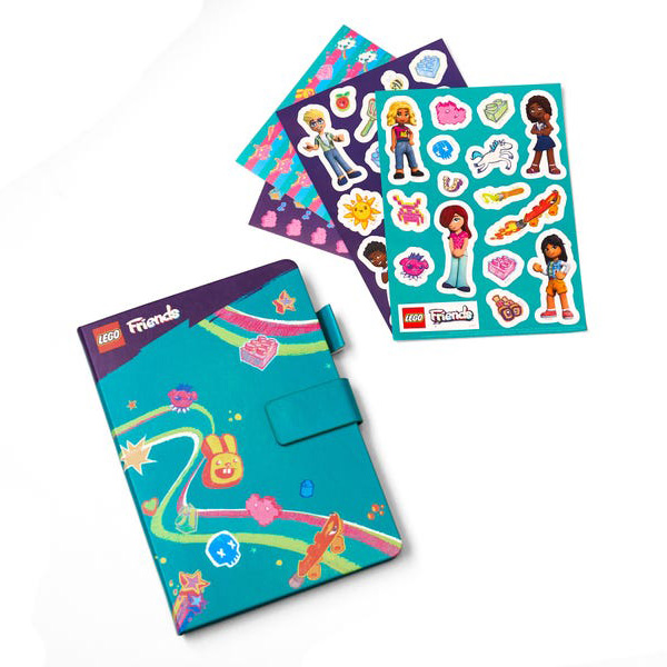 - un carnet LEGO Friends et quelques autocollants (réf. 5007789 BFF Notebook) sont offerts dès 65 € d’achats dans les gammes Friends, DOTS, Classic, Creator 3in1 et Disney Princess