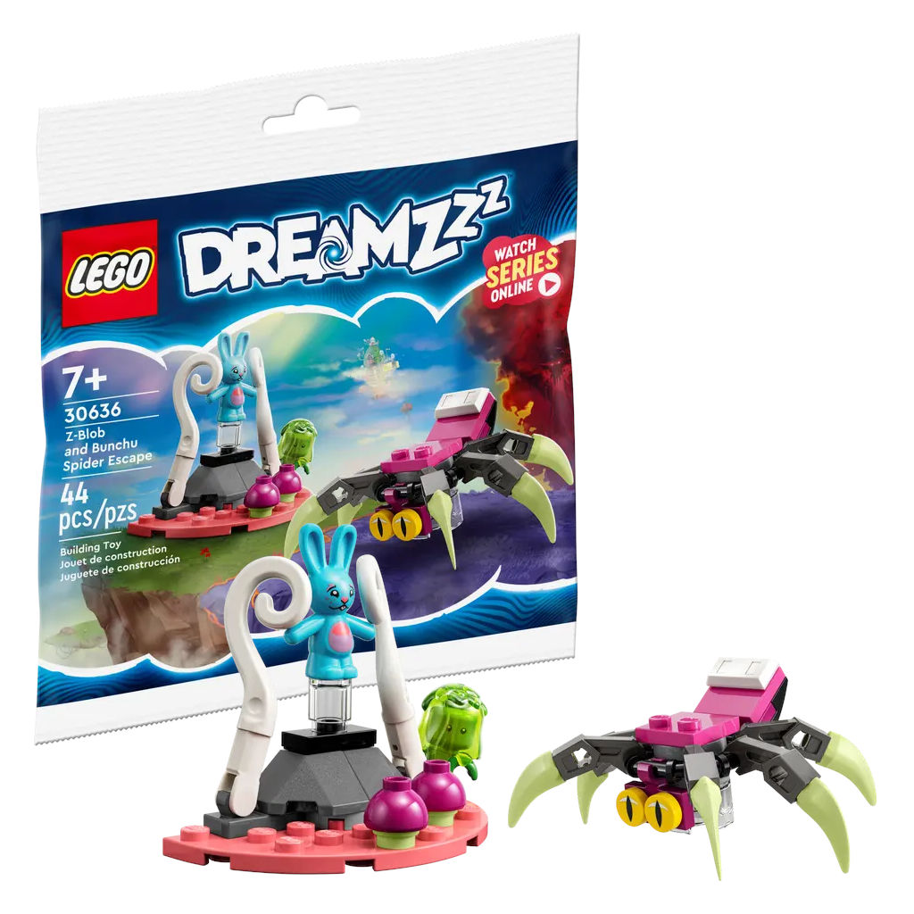 - Le polybag LEGO DREAMZzz 30636 Z-Blob and Bunchu Spider Escape est offert dès 40€ d’achat dans les gammes LEGO City, DREAMZzz, Friends, Harry Potter, NINJAGO et/ou Monkie Kid, jusqu’au 31 août 2023.