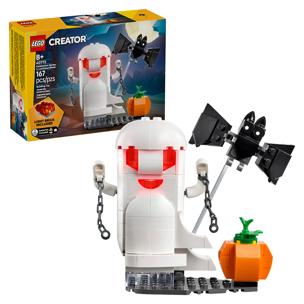 Deux nouvelles offres promotionnelles débarquent chez LEGO en ce 28 septembre 2025, avec tout d’abord le set LEGO Creator 40772 Celebration Series: 3. Luminous Ghost qui est offert dès 120 € d’achat sans restriction de gamme. Au programme de cette petite boîte de 167 pièces, un fantôme équipé d’une brique lumineuse et accompagné d’une chauve-souris et d’une citrouille.