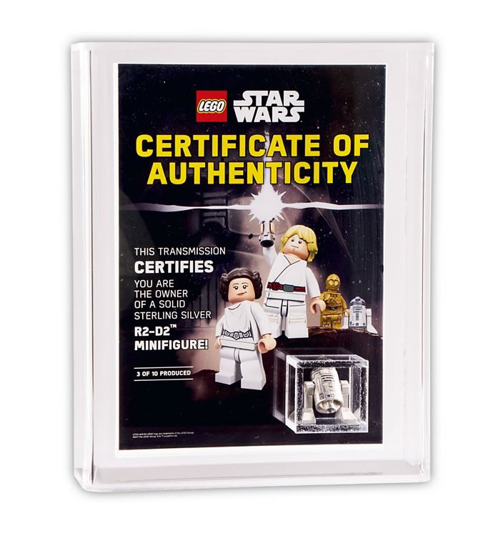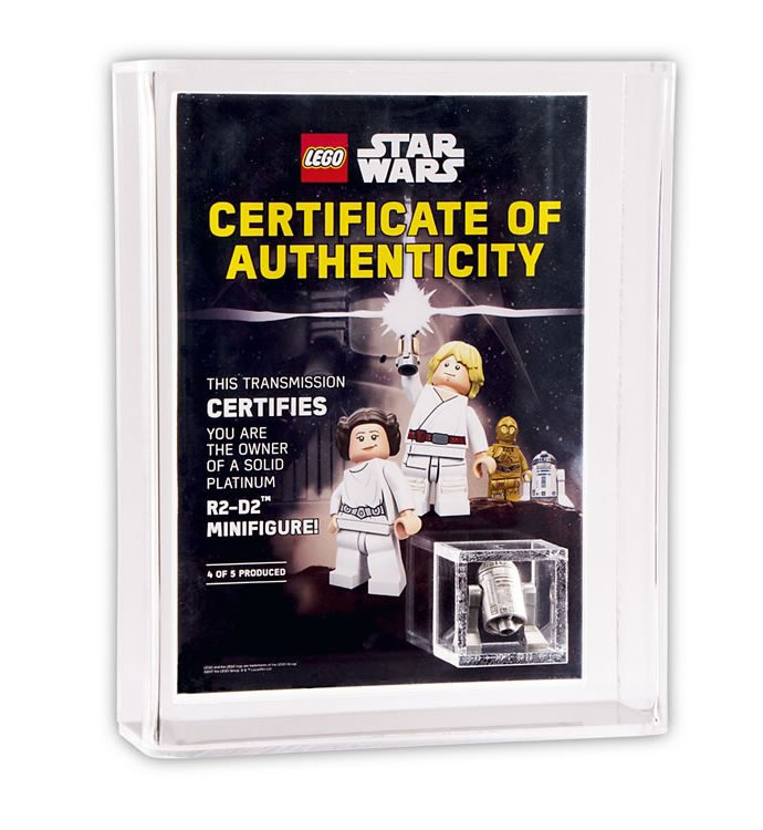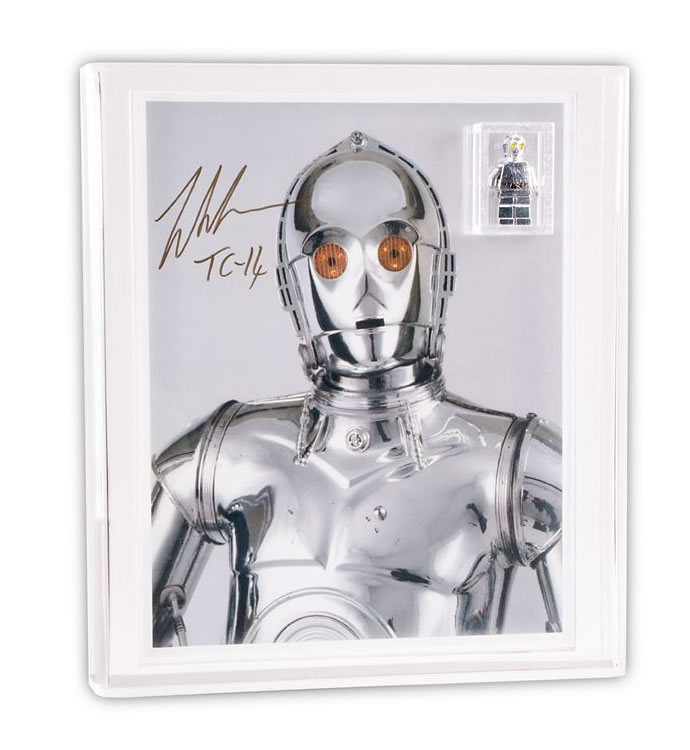 Enfin (et c’est peut-être le plus intéressant), l’offre permet de participer à un tirage au sort, qui permet de gagner trois beaux objets : un TC-14 avec un autographe de John Fensom, qui l’incarne dans La Menace Fantôme, un R2-D2 en argent, et un autre en platine.
