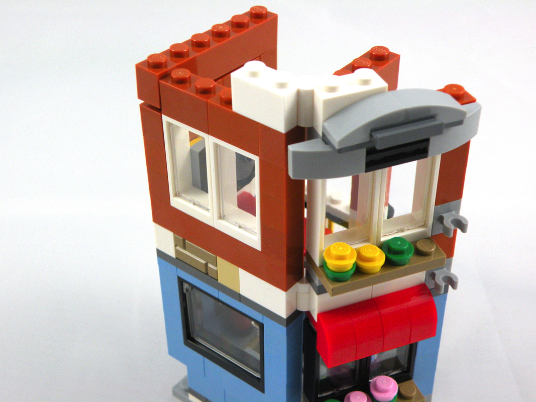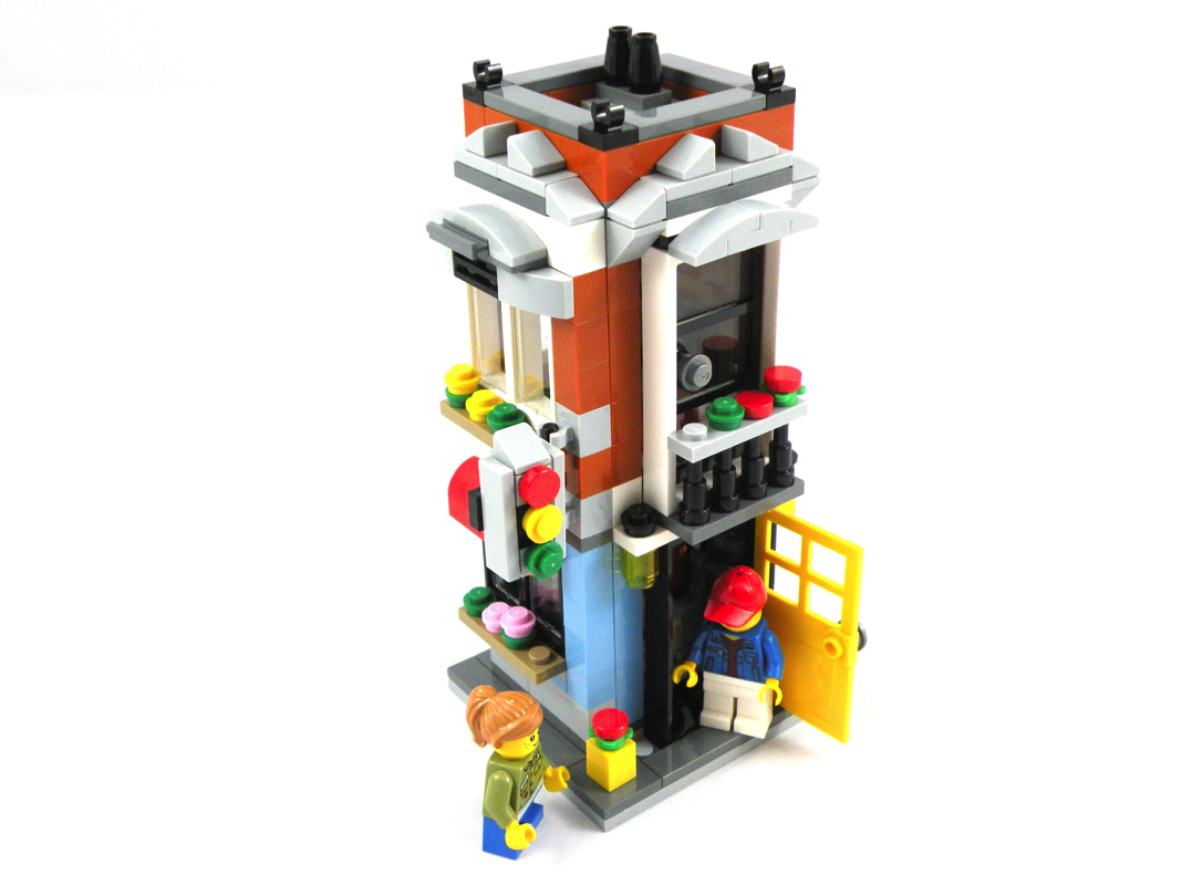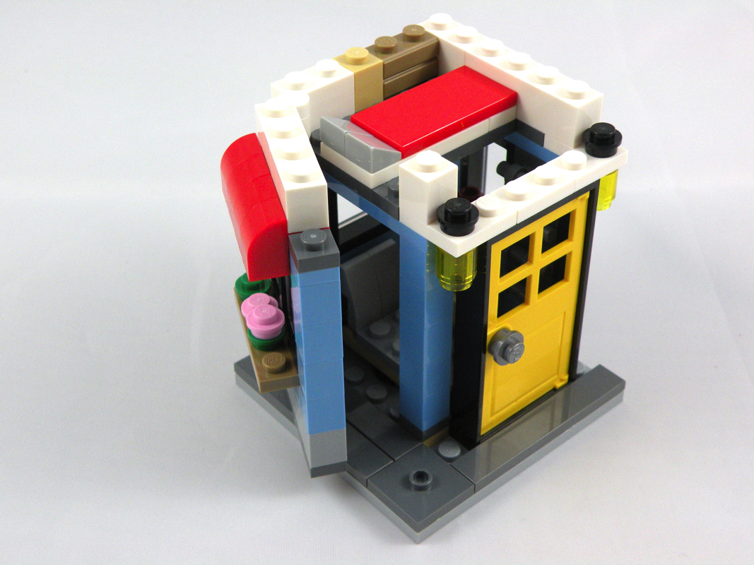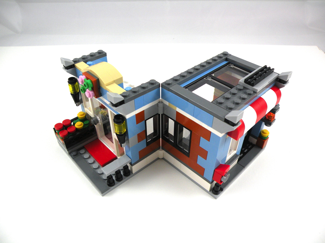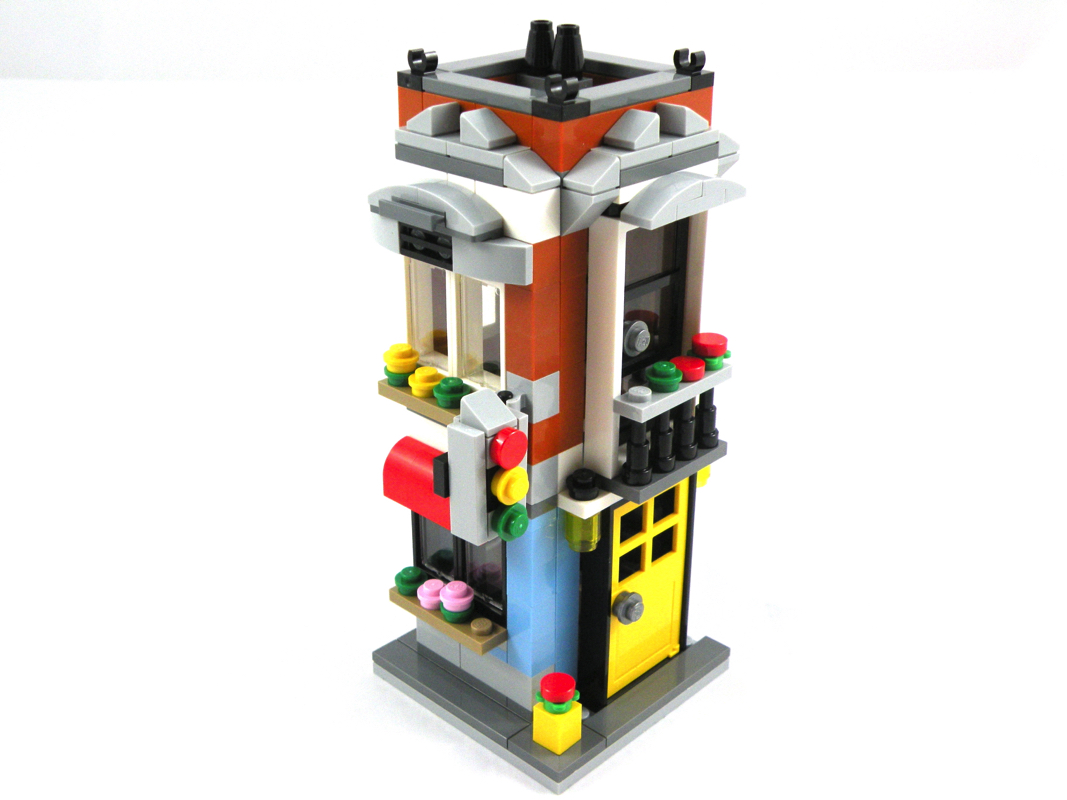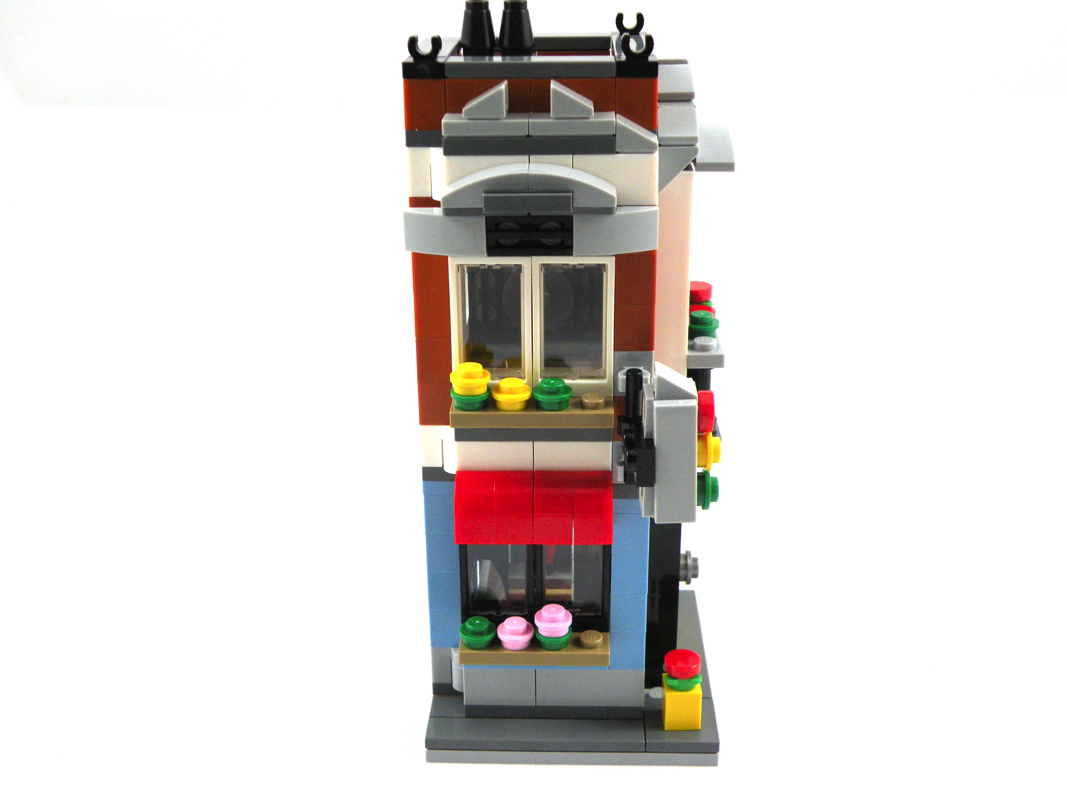 Pas de grosses surprises, ni de techniques de construction très innovantes pour ce fleuriste, qui s’en tire avec les honneurs grâce à un bon choix de couleurs et à une jouabilité assez poussée de par sa modularité (comme toutes les constructions de ce set). Par contre, on aurait aimé un niveau de détail à l’intérieur plus poussé, et peut-être même un second niveau au vu du nombre de pièces qui reste une fois la construction terminée.