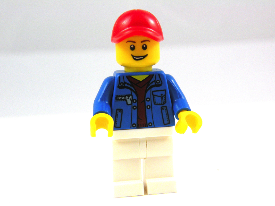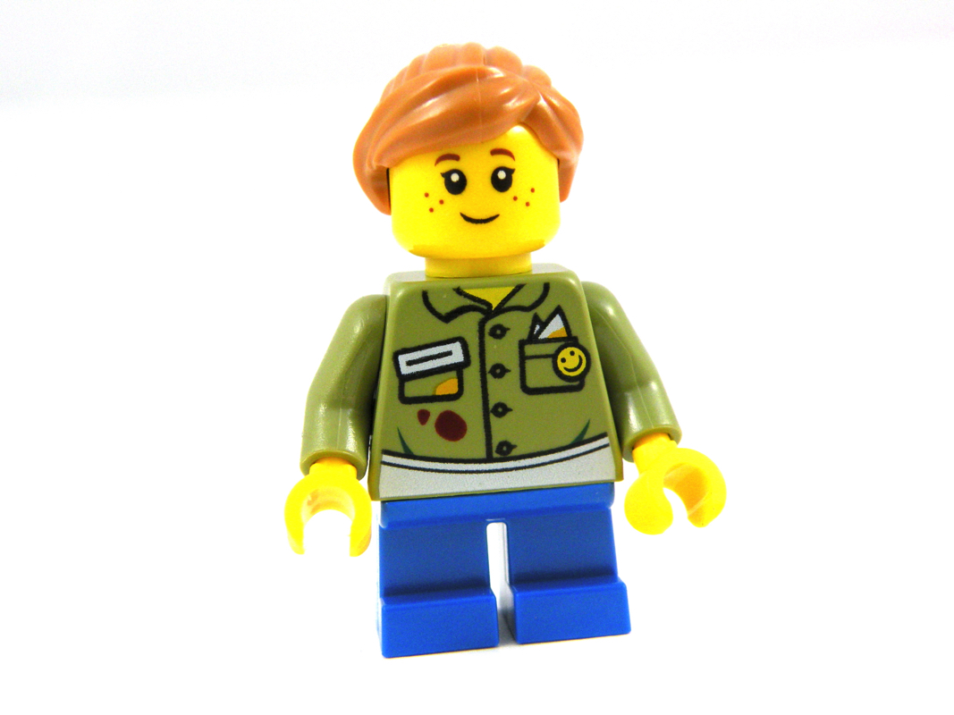 Troisième et dernière variation pour cette dernière construction de notre set 3 en 1 : cette fois nous avons droit à l’homme avec son pantalon blanc, sa veste bleue et sa casquette, et la jeune fille avec son pantalon bleu et sa veste verte (qui ici, pourrait faire penser à une scout)