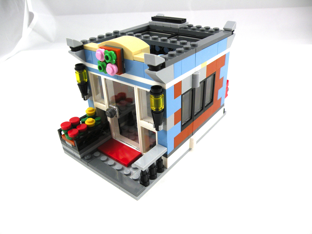 Pas de grosses surprises, ni de techniques de construction très innovantes pour ce fleuriste, qui s’en tire avec les honneurs grâce à un bon choix de couleurs et à une jouabilité assez poussée de par sa modularité (comme toutes les constructions de ce set). Par contre, on aurait aimé un niveau de détail à l’intérieur plus poussé, et peut-être même un second niveau au vu du nombre de pièces qui reste une fois la construction terminée.