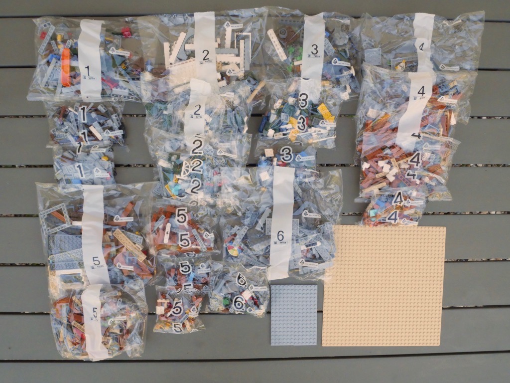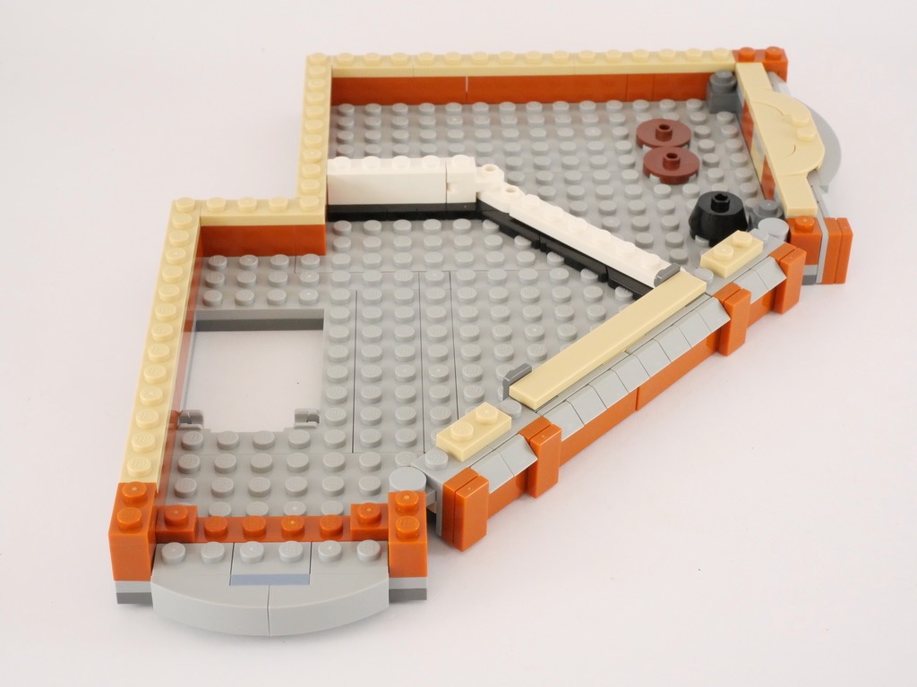 A l’intérieur, nous trouvons 20 sachets de pièces numérotés de 1 à 6, une baseplate de 32×32 tenons en tan, et deux plates de 6×16 tenons en light bluish gray. La notice d’instructions compte 236 pages, pour 293 étapes de construction.
