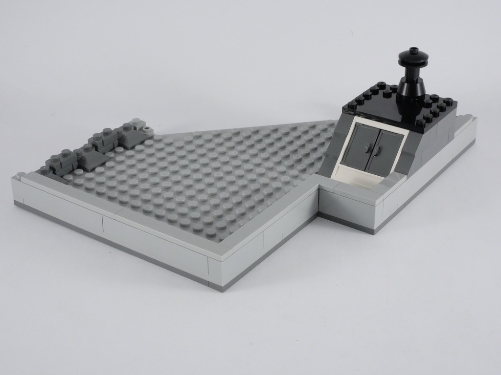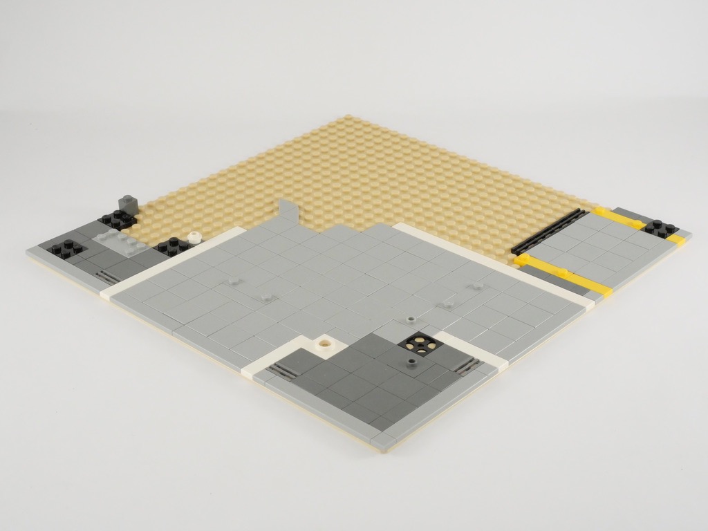 Les habitués ne seront pas dépaysés : la construction commence avec le « pavage » de la baseplate pour constituer le trottoir et la voirie situés à l’extérieur du garage.