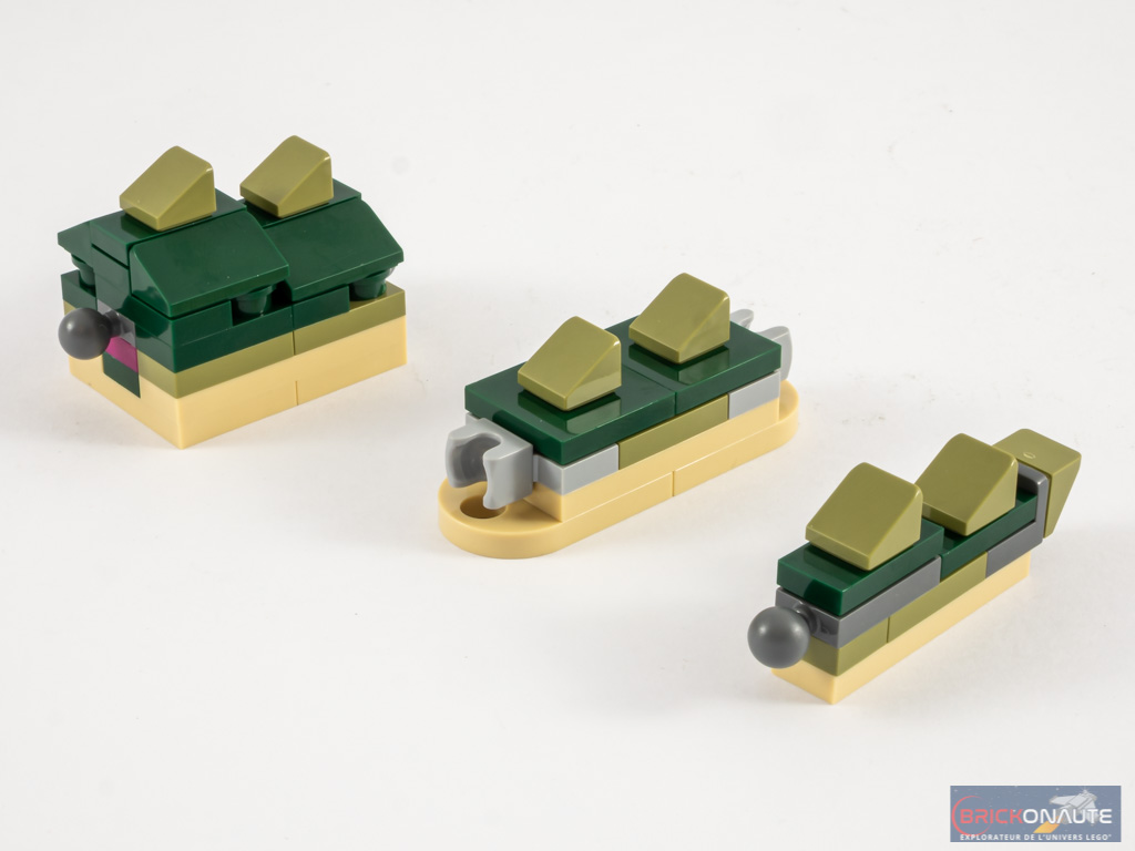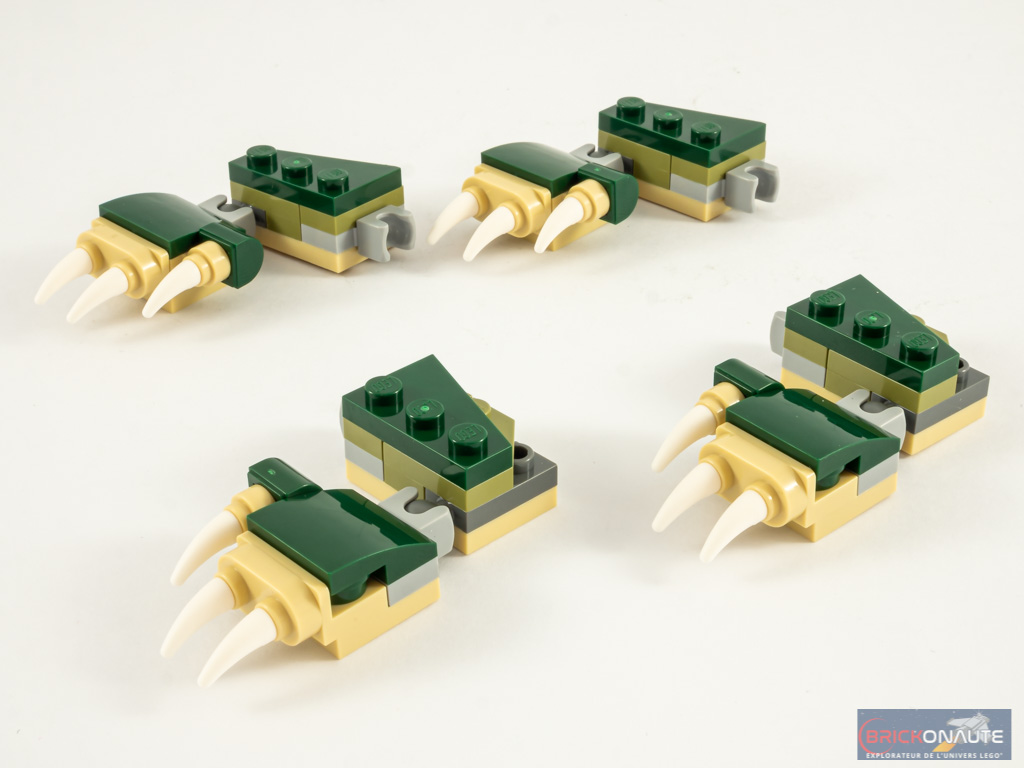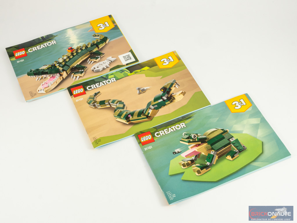 - nombre d’étapes de construction : 210 pour le crocodile, 126 pour le serpent, 83 pour la grenouille