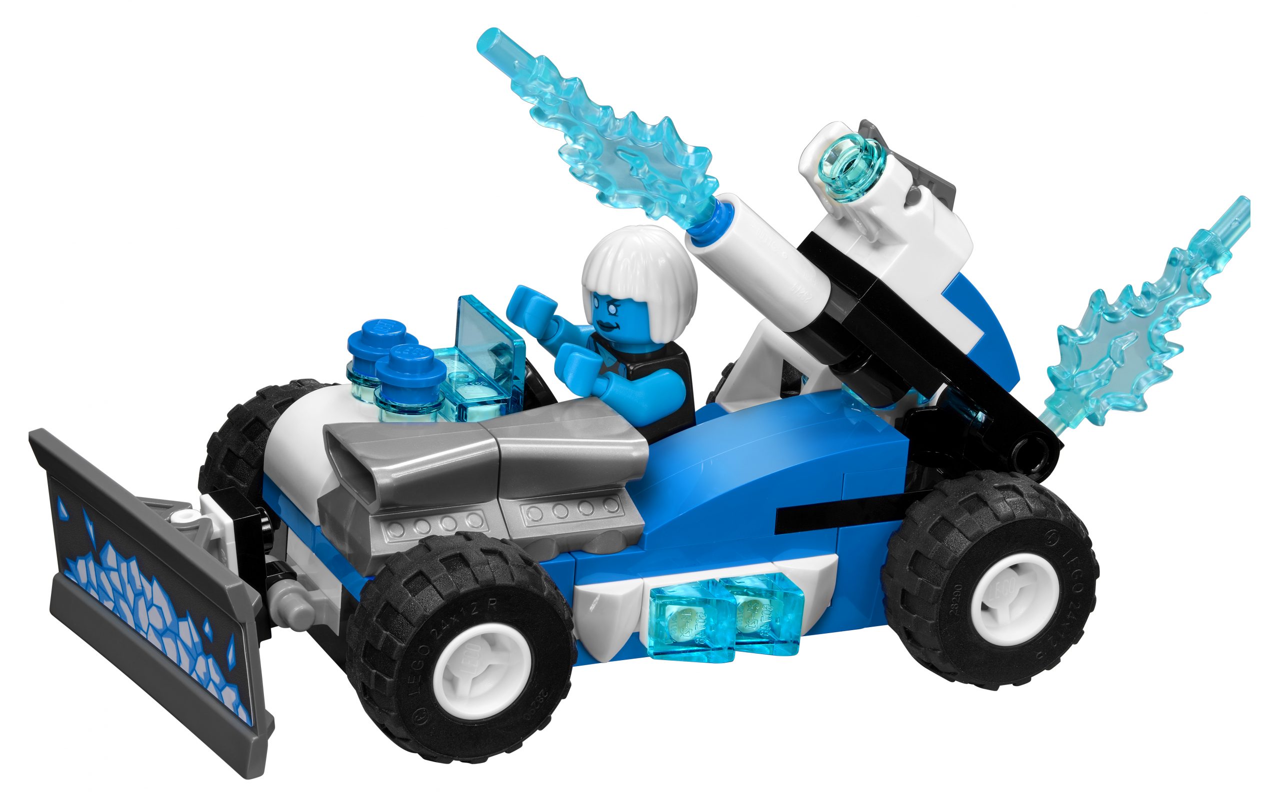 - Killer Frost’s Ice Car features a minifigure seat, adjustable bulldozer blade, dual stud shooters and translucent-ice-blue elements.