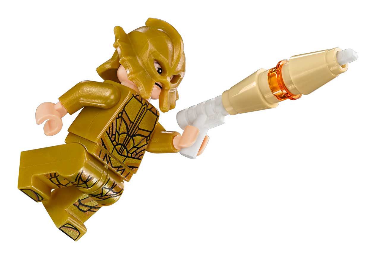• Weapons include Aquaman’s 2 Power Blasts and trident, the Parademon’s stud shooter and the Atlantis guards’ Atlantean PlasmaGuns.