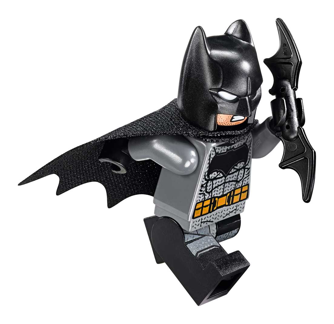 • Weapons include Cyborg’s attachable stud-shooting arm, Batman’s Batarang and grappling gun, Wonder Woman’s sword, the Parademons’ handheld stud shooters and Steppenwolf’s axe.