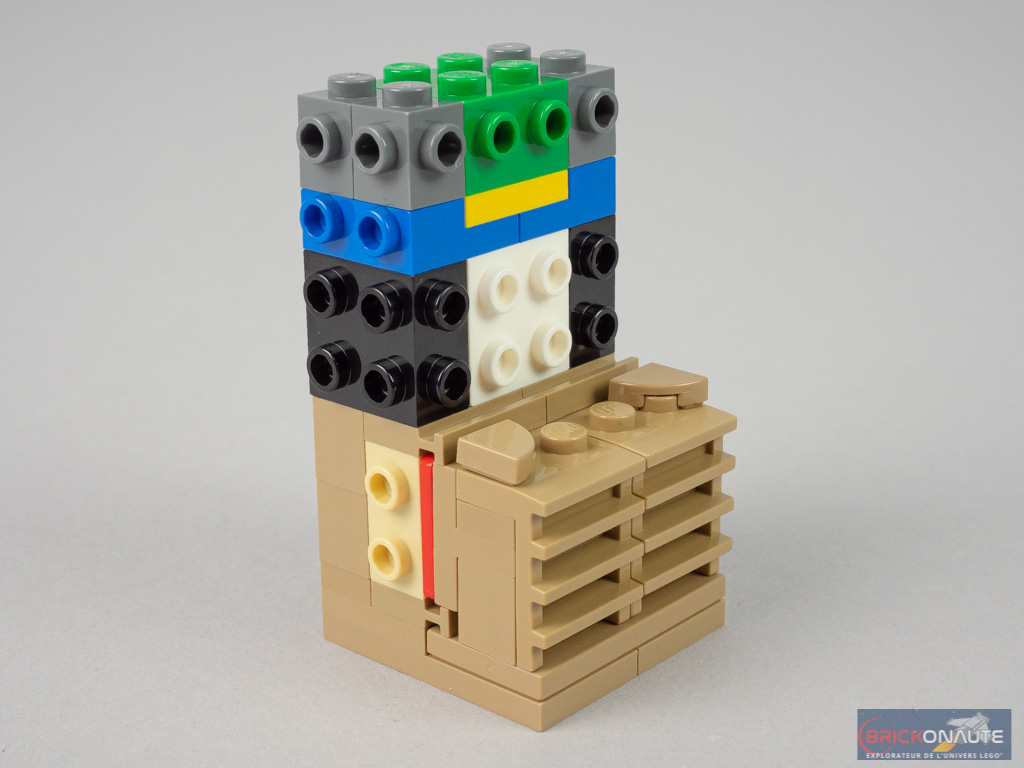 La construction de Onze est tout ce qui se fait de plus classique (pour ne pas dire ennuyeux) dans la gamme LEGO BrickHeadz. On commence ainsi par le torse, puis on s’occupe de la structure de la tête qu’on « habille » ensuite, avant de finir par les jambes et le support d’exposition.