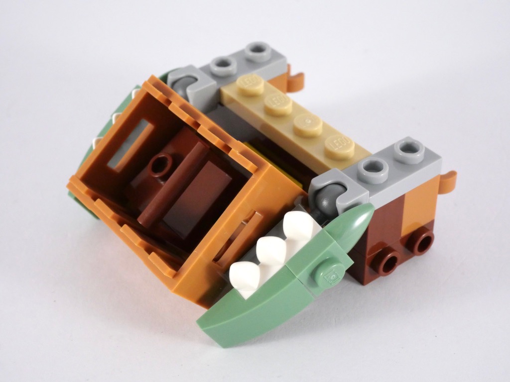 Seul petit regret pour moi : la seule partie mobile est cette mâchoire, mais je peux concevoir qu’il est plus difficile de faire des pattes mobiles et de garantir un équilibre de l’ensemble avec un dinosaure bipède (par comparaison avec le Triceratops du set 75937 – Triceratops Rampage pour lequel vous retrouverez ma review ici).