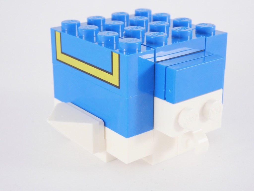 Je terminerai quand même par quelques points positifs : la présence de la petite queue, et les deux pièces tampographiées apportent au torse un niveau de détail satisfaisant. L’utilisation de wedges pour les pieds palmés est intelligente, et la réalisation du chapeau est convenable.