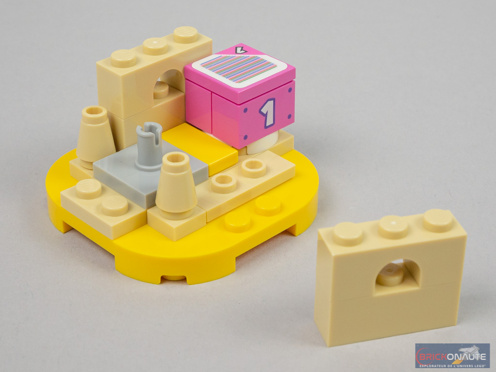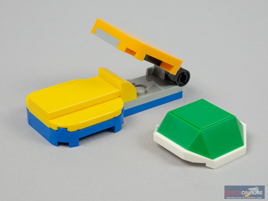 La construction suivante est un dispositif permettant, en tapant sur la plateforme, d’éjecter la carapace verte sur le Pincemi. Et le principe de construction est identique à celui vu dans le set 71399 Luigi’s Mansion Entryway pour faire tomber M. Marais. On construit ensuite le petit crabe et on le place sur sa plateforme.